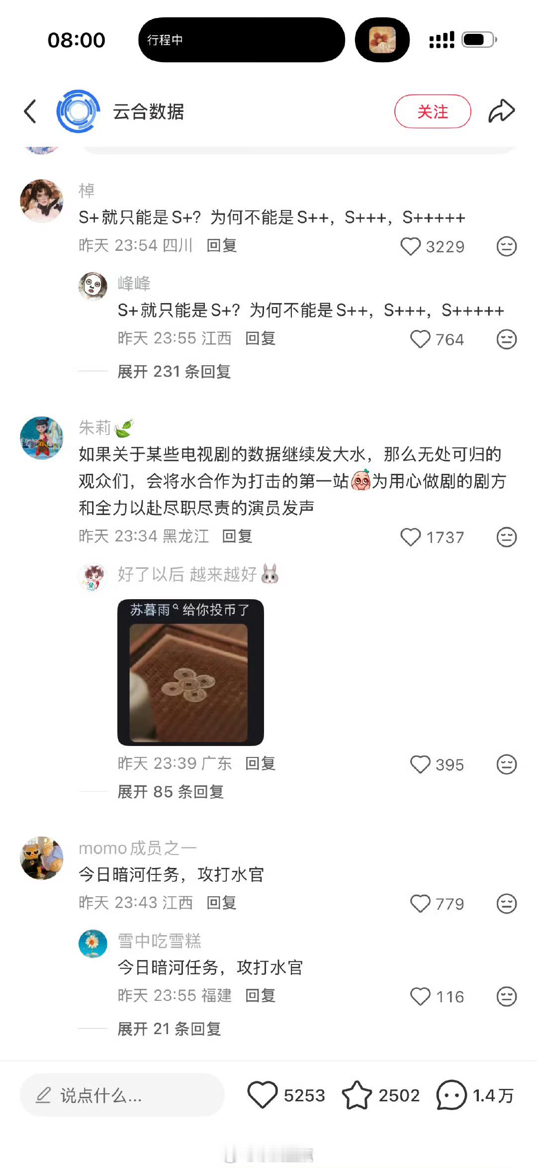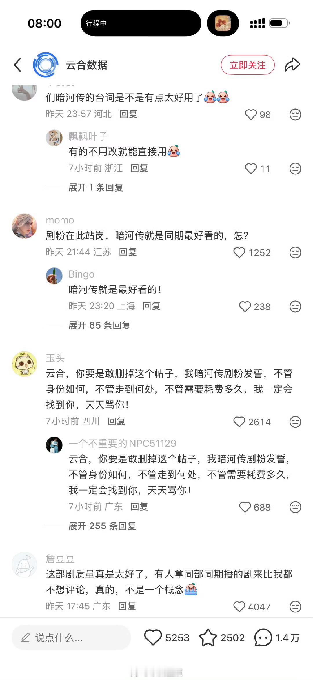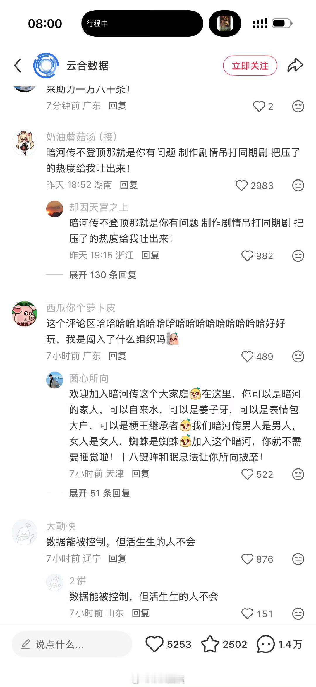 云合数据小红书评论区被暗河传剧粉玩梗贴脸开大了,这评论区笑不活了[允悲] 问剑云合[笑cry]