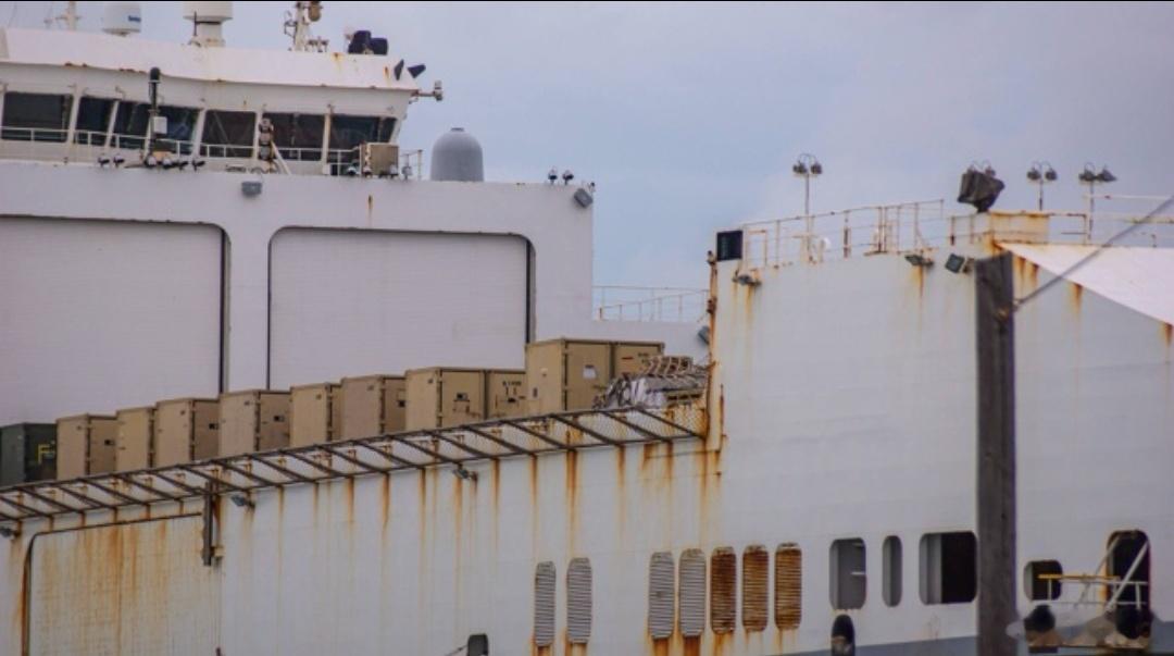 10 月 27 日来自波多黎各庞塞港美军 MV Ocean Trader 浮动特种作战基地的罕见高质量图像,以及一架 C-17A 飞机运送并放置在船上的未知货物。