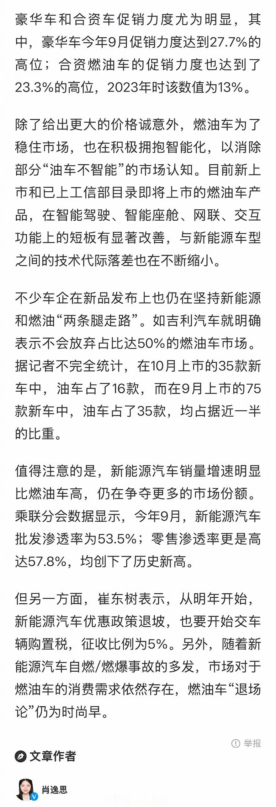 专家称燃油车退场论仍为时尚早油车退场论确实还早,但老龄化趋势比新能源严重多了。