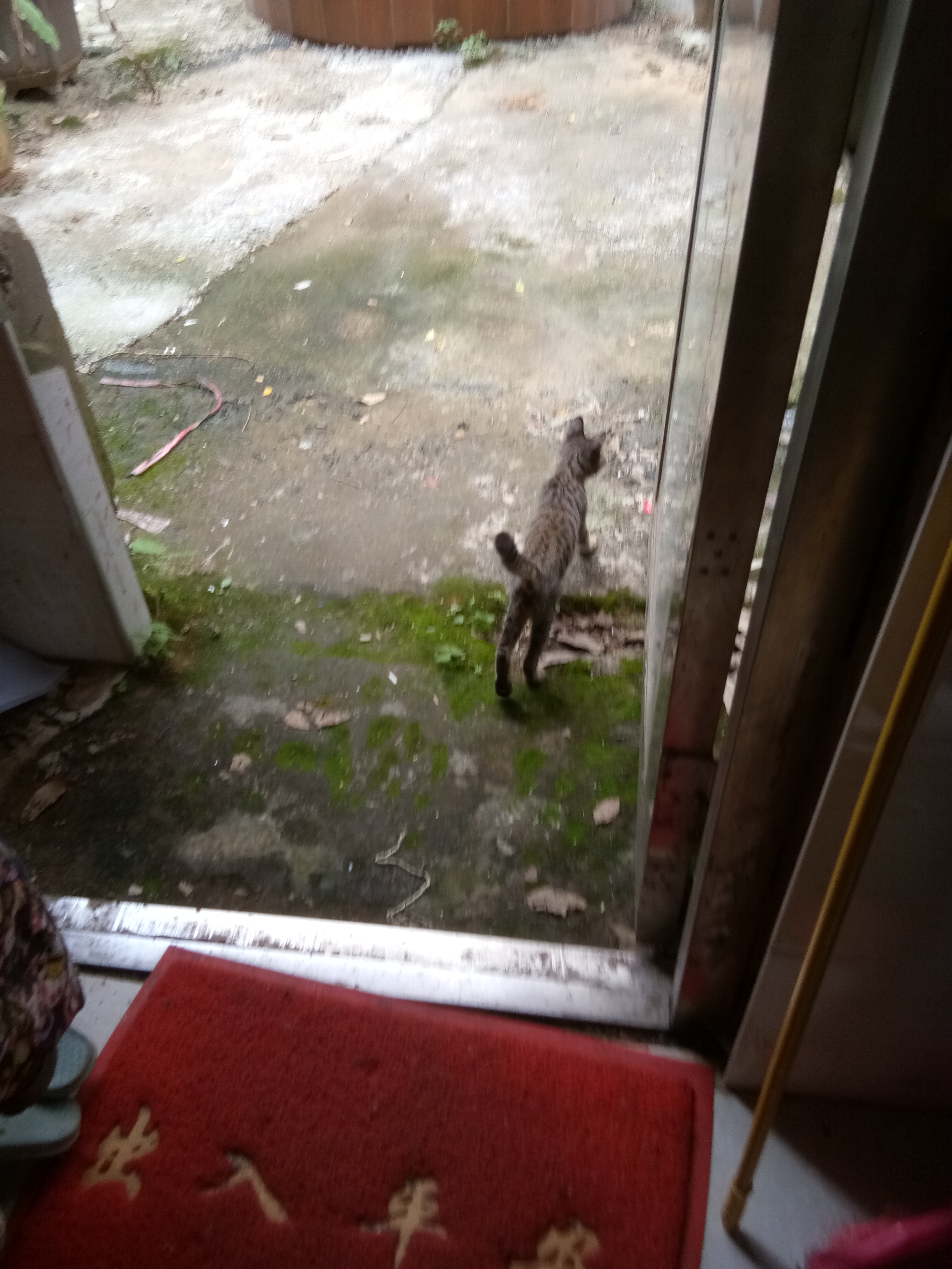 我用一点猫粮获得了一只猫的信任,现在不知道它怎么跑进我家了