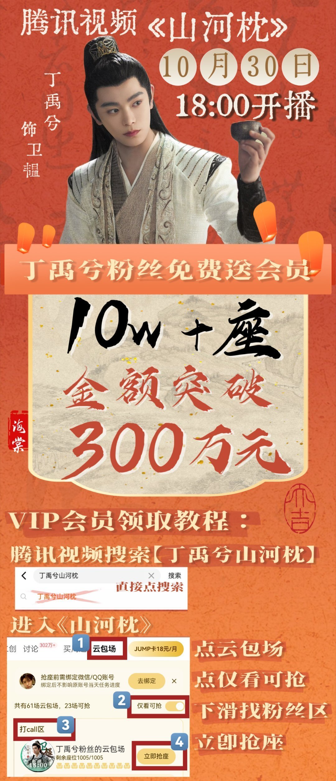 《山河枕》主演包场来了——❶宋茜粉丝包场2万场➕。❷丁禹兮粉丝包场10万场➕。