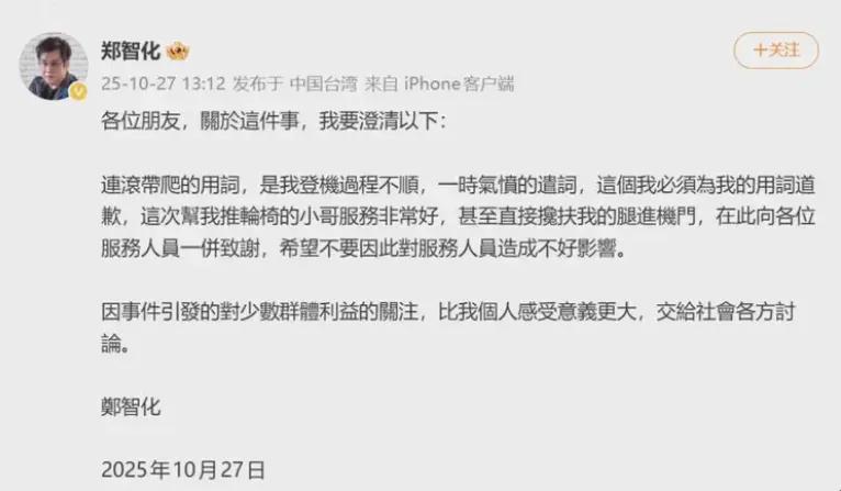 这事儿本来是个明星炮轰机场的瓜,没想到吃着吃着,竟嚼出了满嘴的酸涩。 郑智化一句莫须有的连滚带爬,但也捅破了多少残疾人心里那层不敢捅的窗户纸?别说他夸张,助残协会副秘书长骆燕坐轮椅亲身经历过。急得想直接坐地上挪进机舱!那种卡在门槛前的无助,健全人可能一辈子都体会不到。 机场光速道歉,立马整改。增人手,试新设备。郑智化也道歉,承认用词过火。原来,双方要的不是对立,而是被看见。 机场这边没较劲,网友现在吵翻了天!有人说他演戏,有人骂机场摆烂,可更多人开始问。为什么我们的无障碍设施总差最后几厘米?为什么每次都得靠名人发声才被重视? 说到底,郑智化的愤怒不是戏,是千万残疾人的日常。机场的整改也不是怂,是社会进步的必经之痛。这道坎,跨过去靠的不是骂战,而是多一份换位思考的温柔。
