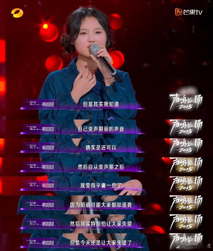 和刘宇宁合唱的童星惨遭淘汰声鸣远扬 那个和刘宇宁合唱《飞云之下》的韩甜甜,来到《声鸣远扬》唱《天下无双》。变声期成了她歌唱征程中的挑战,高音破音被淘汰。现场她落泪,评审鼓励明年再来。期待她能突破难关!刘宇宁[超话]