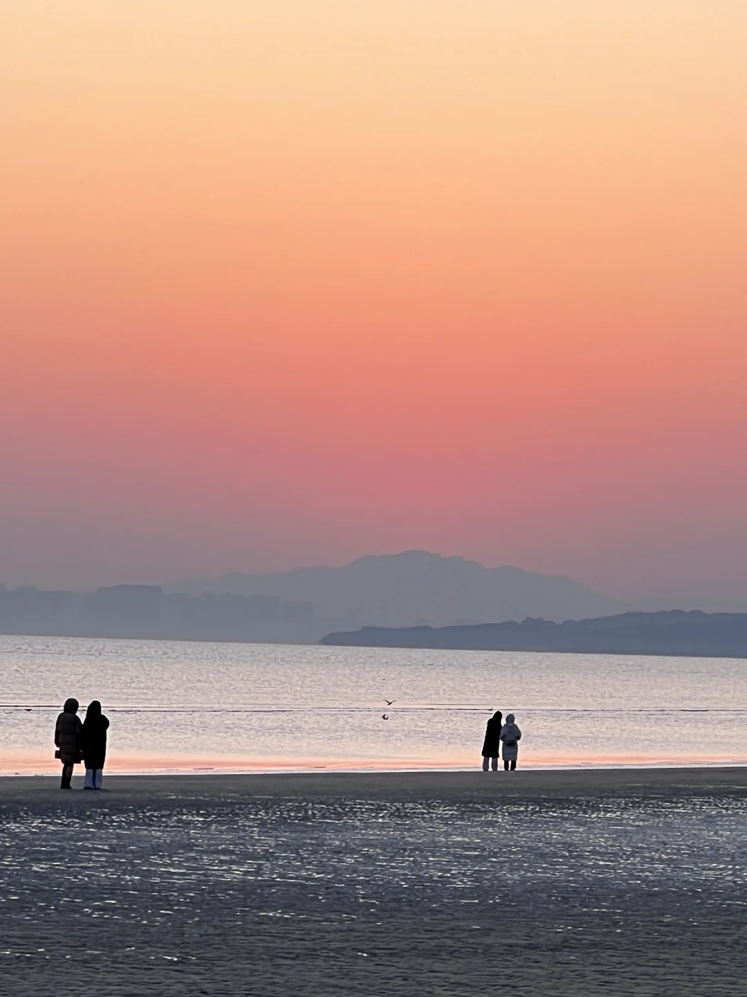 看一场海边的冰河世纪 海边的粉调时刻总有一只海鸥为你停留 烟台海边日出实况氛围感烟台包车一日游
