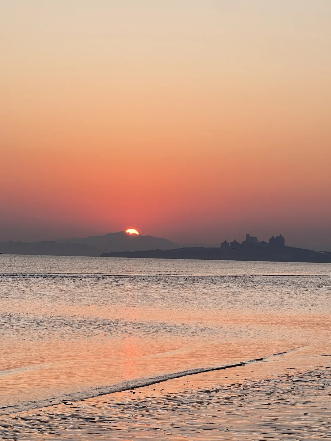 🍎目前季节日出推荐地(渔人码头铁轨那边)-黄海明珠-趣浪国际沙滩-养马岛(差了点意思)-里蹦岛(应该有朝霞好看,太远,不通公交)烟台山后山也可以(但一般)