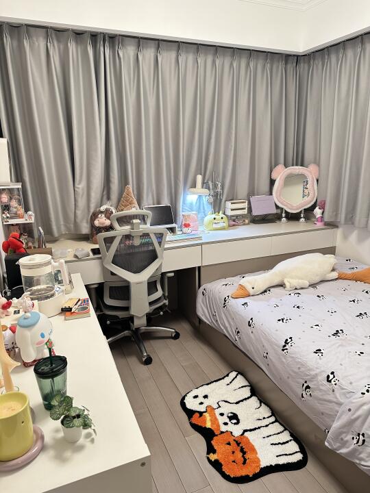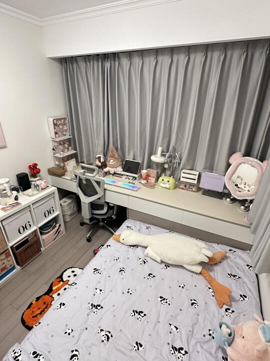 我们家这个阳台+书房爆改成9平采光小卧室真的太舒服了,没有飘窗,实打实的卧室面积,还有超长的书桌,采用榻榻米的布局,用pdd装满了整个小卧室,宅着简直不想出门了