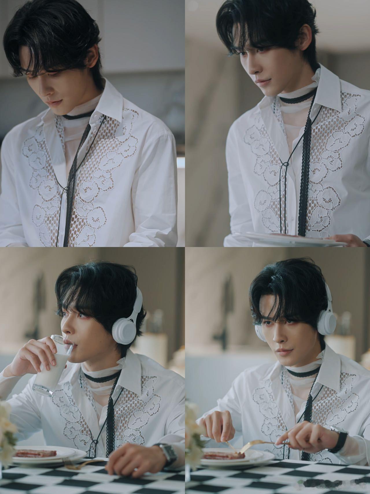 短国李栋旭出现了 像吴谨言老公。头发遮住一半,每张图长得都不一样。