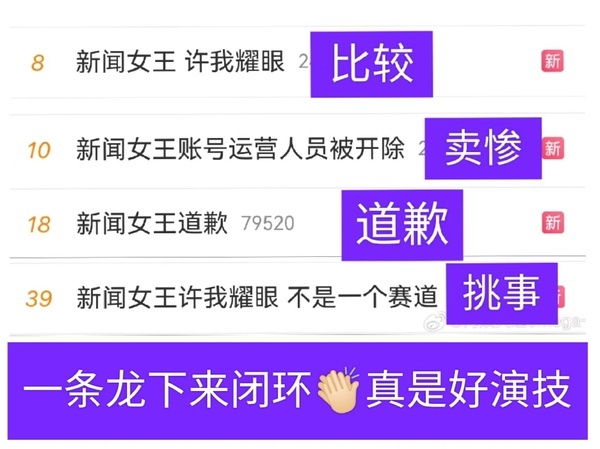新闻女王道歉新闻女王官方出来道歉了,这是今年第几个官号运营藏不住小心思了,皮下的发言虽然说也没什么问题,但是加上黑脸表情包的话就像在阴阳了,如果不是因为想蹭热度完全可以不用回的,一套流程下来蹭的别太明显了[黑线]新闻女王 许我耀眼