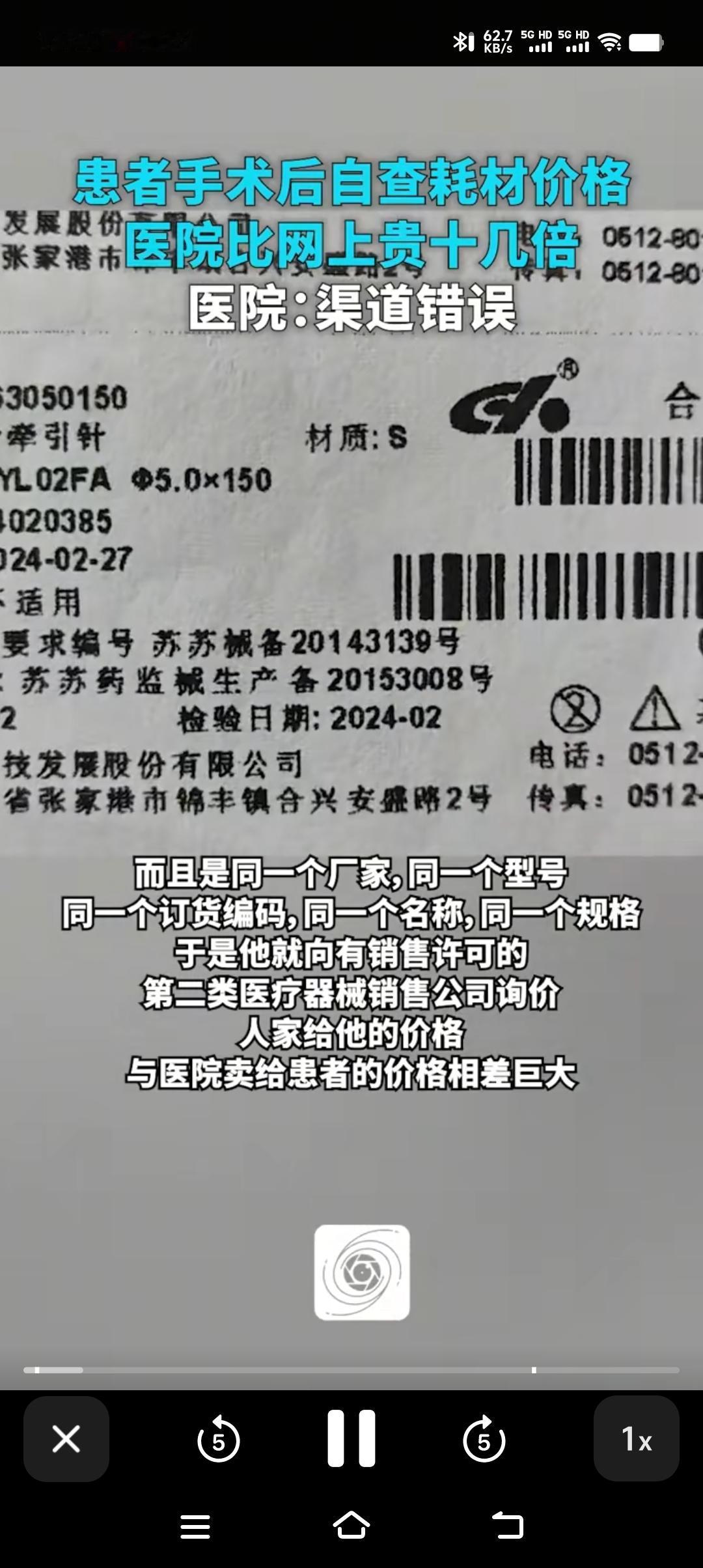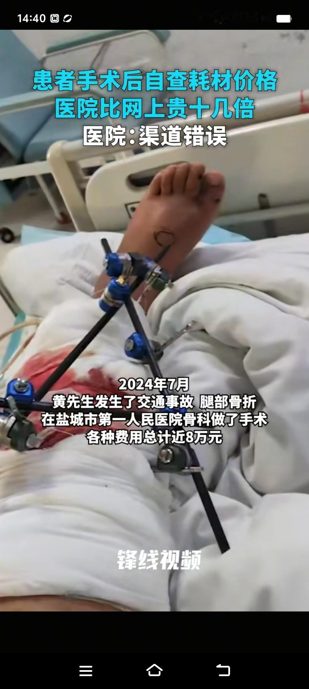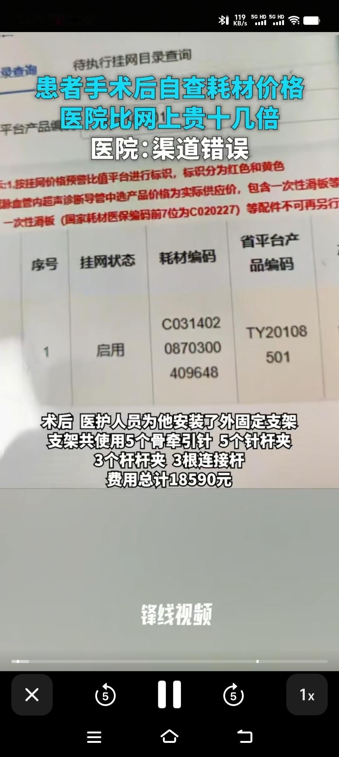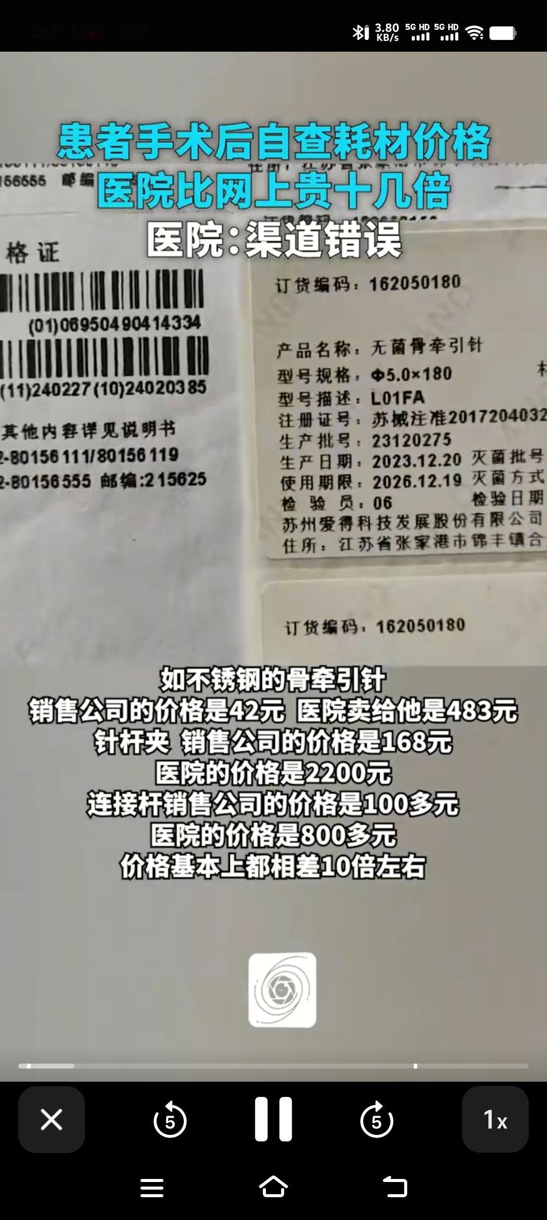 “140块钱的东西,到了医院里面成了2200块钱”,医院到底是救死扶伤的地方,还是坑你没商量的地方? 总共8万元的骨折手术费,其中器械费花了18590。一根国定骨折的针杆夹,医院卖2200元,网上同一厂家、同一型号、同一编码、同一名称、同一规格售价140。从网上购买需要1800的器械费,到了医院整整贵了10倍还多。患者反映问题的时候,院方又把价格调成了895。对于患者提出的疑问,院方给出的答复是“医疗器械是不允许通过网络平台销售和购买的,院方都是通过阳光平台采购的,所有的药品和器械卖给患者都是0差价”。在这里我想说的是,既然是0差价,那你为什么还要调价呢?这不是自相矛盾,难圆其说吗! 山西太原有五家医院被罚,其中白求恩医院最高罚款1177.598万。所以说医院一旦变成敛财的工具,那么受到伤害最深的就是患者了。