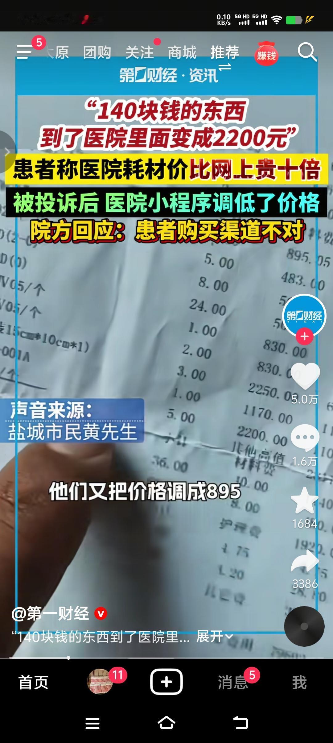 “140块钱的东西,到了医院里面成了2200块钱”,医院到底是救死扶伤的地方,还