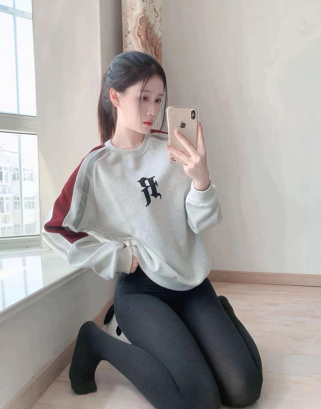 📸 白色卫衣+黑色紧身裤,简约又时尚!👗👖👠