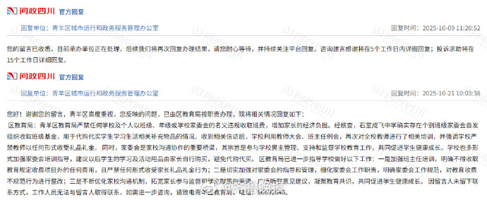 在回应中,青阳区教育局承认有班级收取班费,称班费是用于“代购代买学生学习生活相关补充物品”对是否有老师收受礼品上不置一词,颇有避重就轻之嫌。