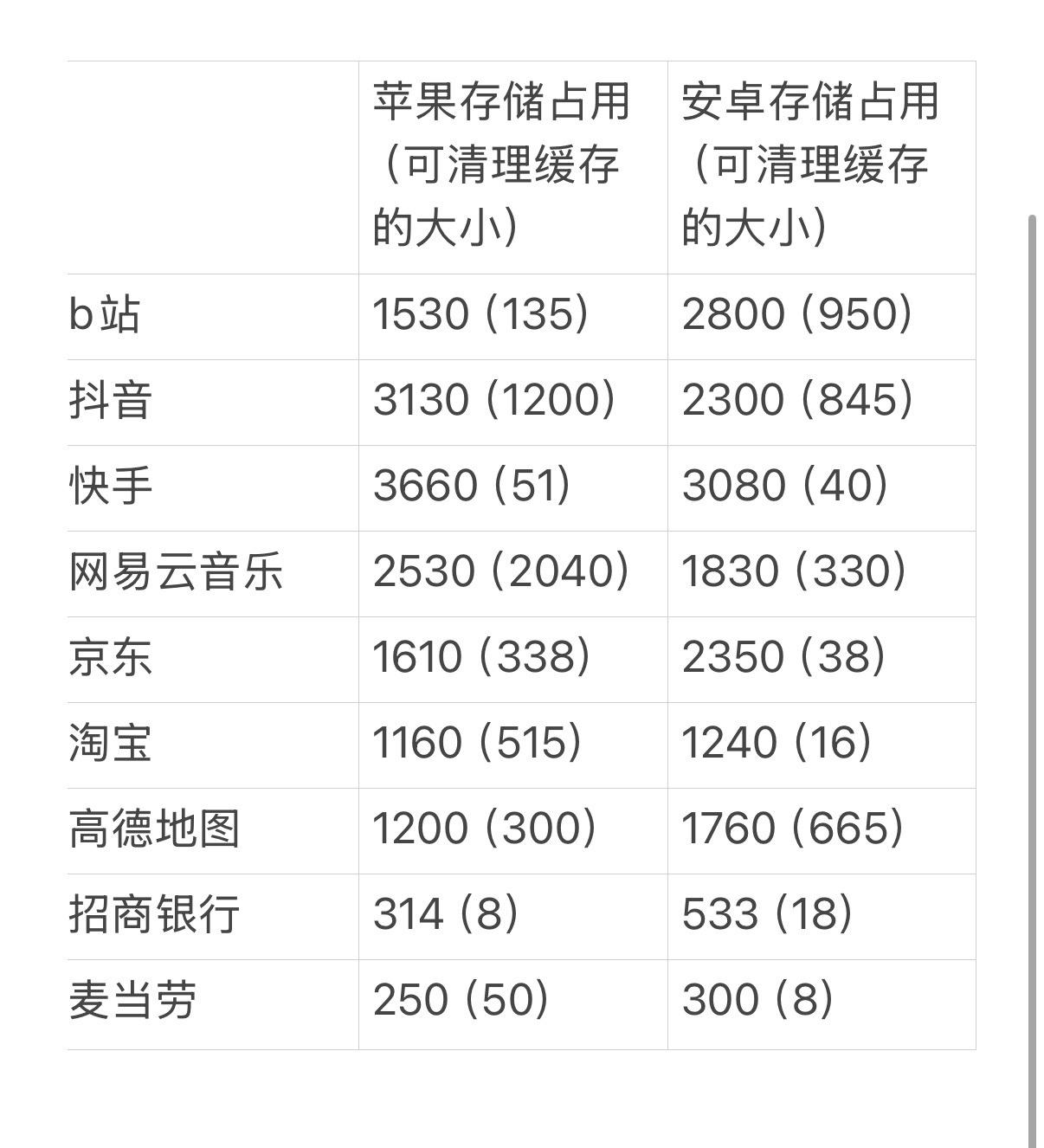 256GB≈512GB?实锤了,苹果的存储空间就是比安卓耐用 苹果的存储空间是否比安卓更耐用?这个问题网友争论是喋喋不休。这次统计了几个常用app在苹果和安卓机所占存储大小,发现苹果存储确实耐用。 每个app都是先看它占用多少,然后再进去把能清理的缓存清理掉。最终发现,苹果占用存储就是小。(App的版本一致) 所以苹果存储确实比安卓更耐用,光看app占用,苹果这边确实会更小些 其中比较惊讶的是网易云在iOS系统中仅占500MB,是安卓的三分之一! 当然,造成这一局面的不全在手机厂商,而是软件生态,安卓软件一般比较臃肿,产生的垃圾多;另一方面,苹果华为都有减少重复文件占用的功能,华为的叫超空间压缩,苹果的没名字但比如不同群的相同文件也只存一份,不同app的同一个文件,比如剪映和刘妈辅鼬神中导入同一段素材,都只占用一份的空间,而安卓不同[笑哭] 所以,网友对于苹果256等于安卓512,并非空穴来风,但也不准确,只能说256GB等于安卓三百多GB,2倍太吹了。我用了这么多机子,真就觉得大一点,相当于300来GB,当然了,这也不能是你苹果存储卖出金子价的原因![狗头]