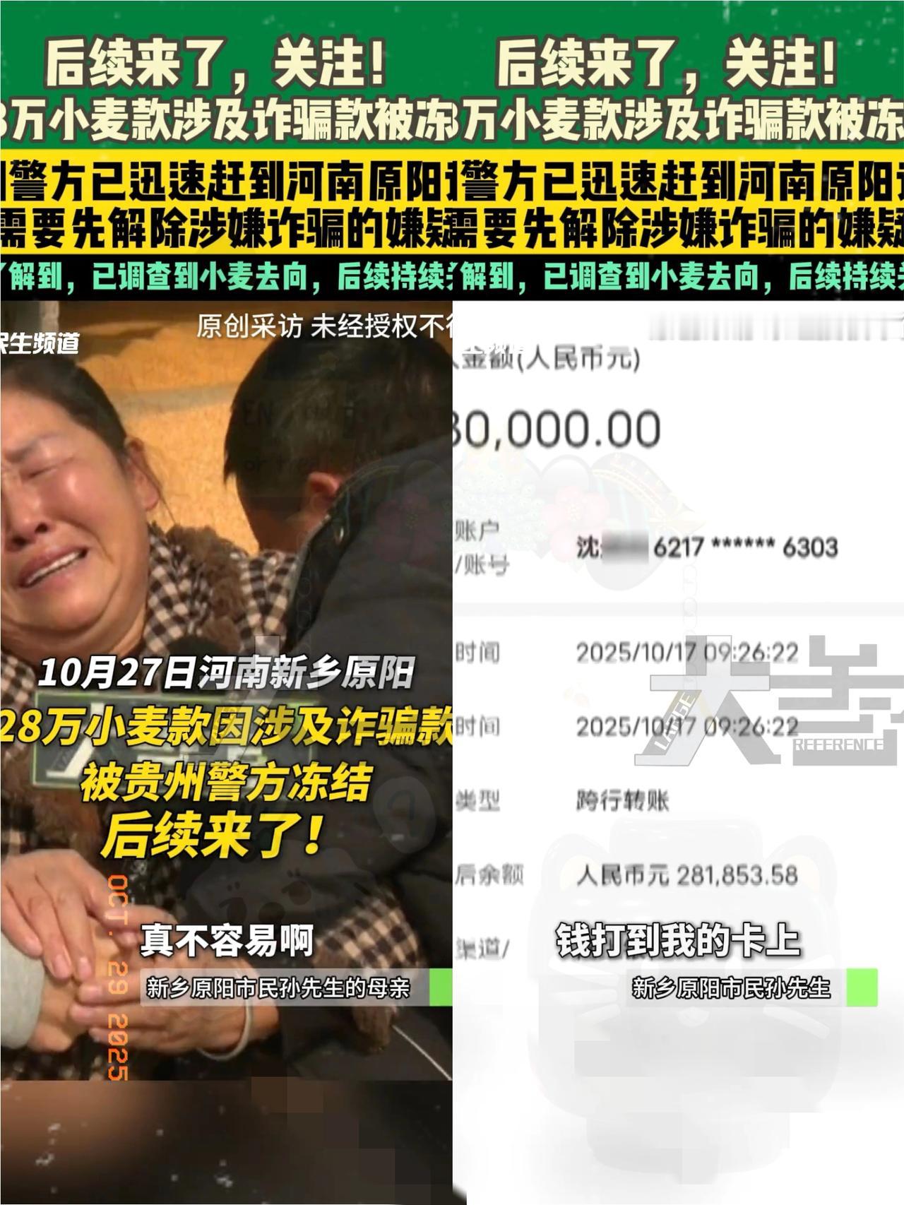 卖粮28万被冻,老实人咋就这么难?孙先生辛苦换的血汗钱,转眼让一家陷绝境,银行卡冻了、生意停了,钱货两空的苦,谁懂啊! 骗子躲得没影,受害者倒要扛后果,这事儿想起来就气!记者反映了情况,民警也帮着收集证据,可最让人窝火的是银行那句“没办法”。咱普通老百姓哪分得清啥是“涉诈资金”?银行冻结账户是职责,但也不能不管受害者的死活吧? 说到底,不能只让老实人吃亏!银行多想想办法,帮孙先生渡难关,才是该有的担当。要是每次都让受害者扛,以后谁还敢踏实做生意? 你们觉得银行该咋帮孙先生?遇到这种事,普通人还能咋维权?来评论区聊聊!