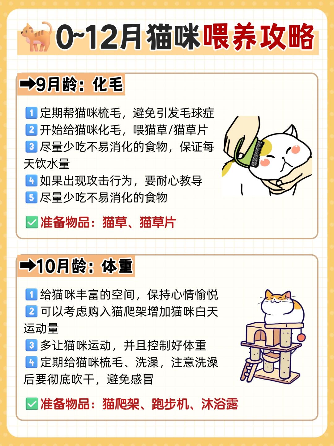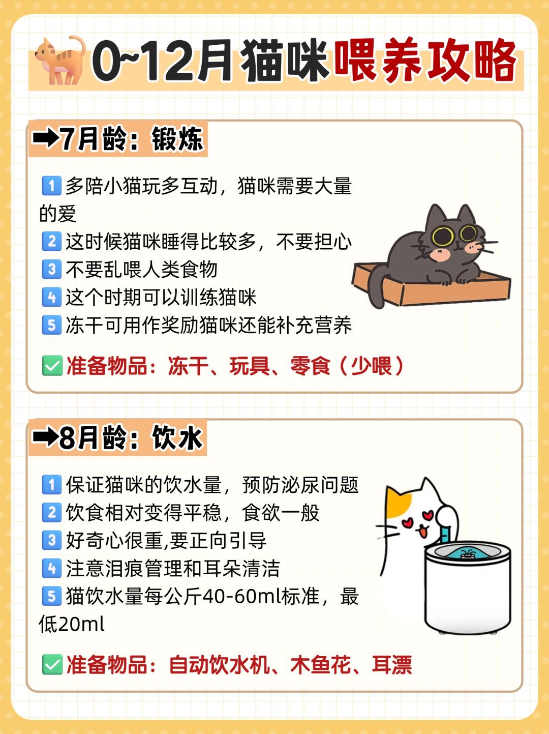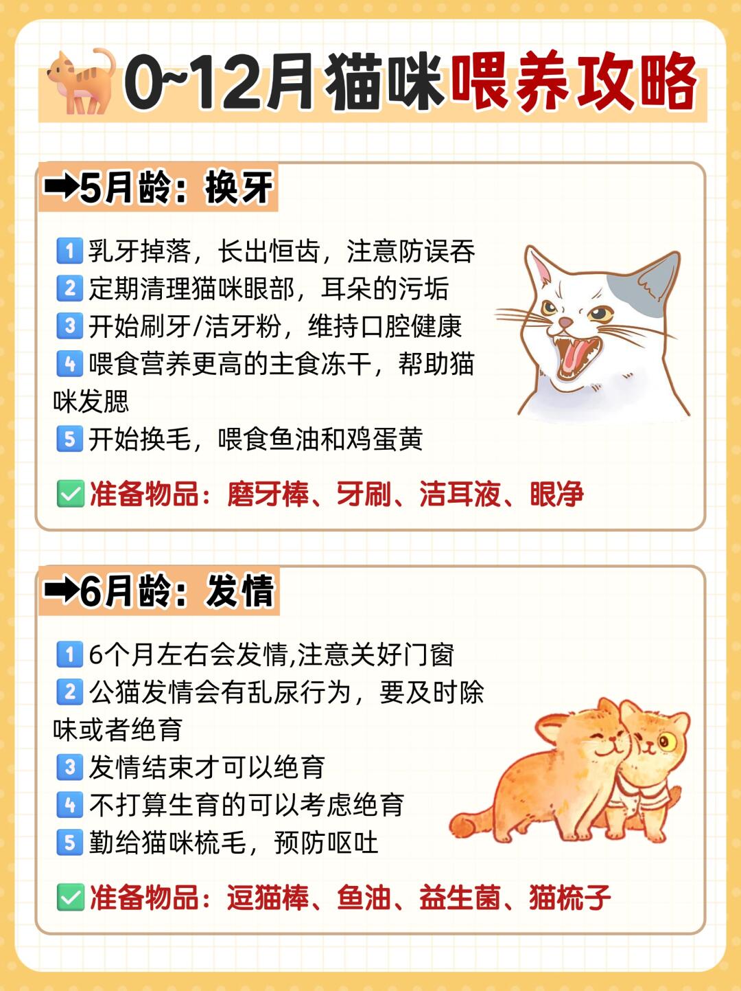 🙆♀很多新手铲屎官接到小猫回家,不知道怎么喂养。✅码住这一篇幼猫0-12月成长阶段养护指南,轻松喂养小奶猫~