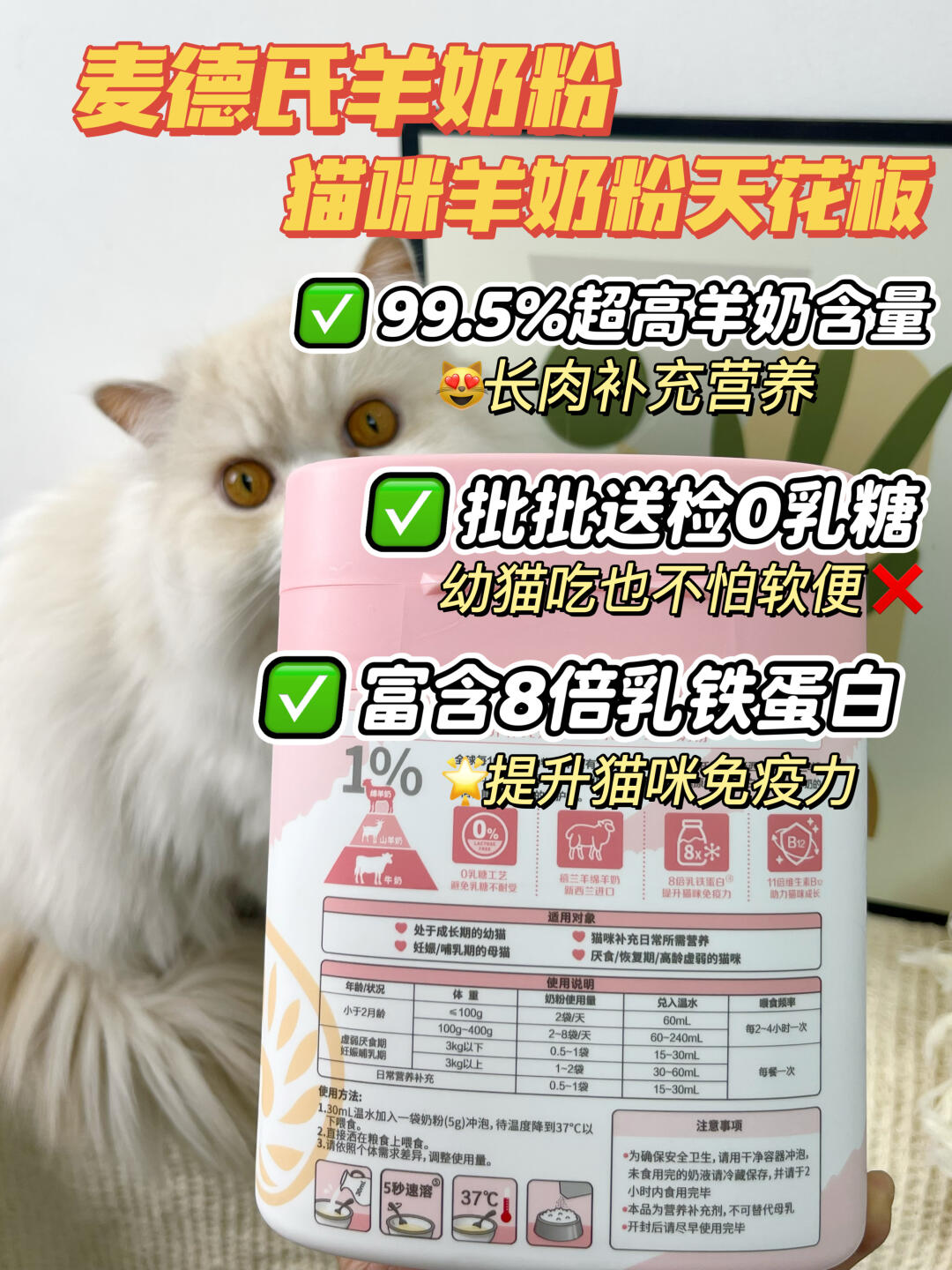 ⚠️要注意的是,0-6个月是猫猫的黄金长肉期,👉像我家猫猫从小到大喝的都是麦德氏羊奶粉!长肉补充营养的同时还能⤴提高免y力,身体素质嘎嘎好‼