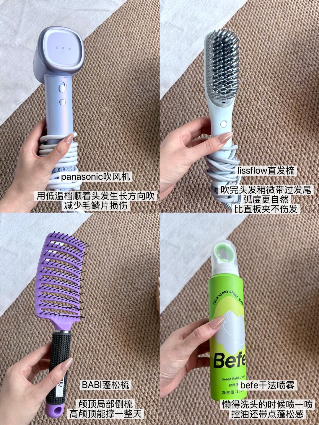 •lissflow直发梳:吹完头发稍微带过发尾,弧度更自然,比直板夹不伤发