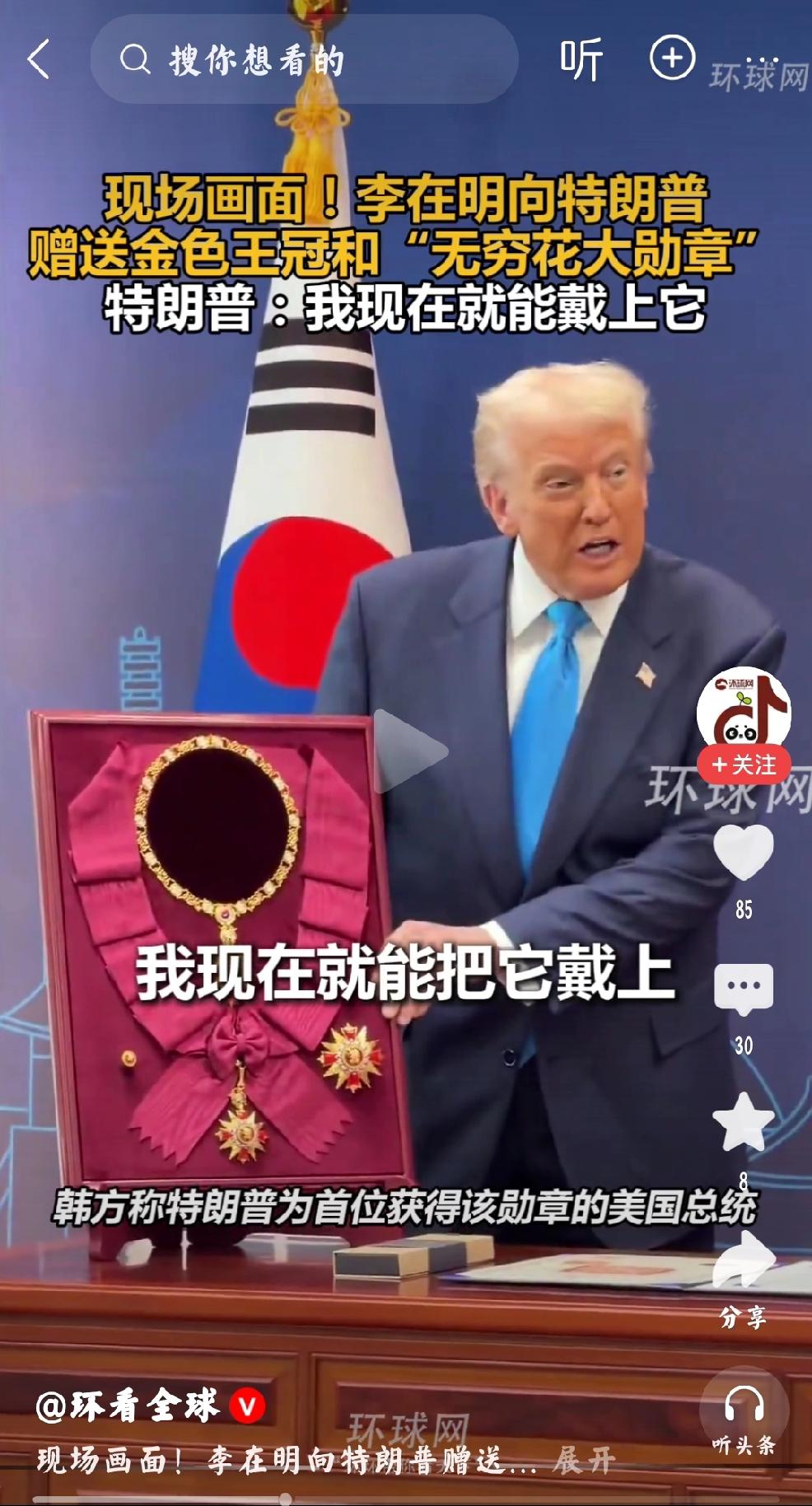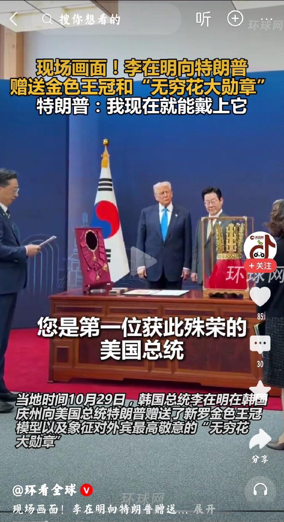 特朗普:打个样 个人观点:特朗普,现在是风光无限,日韩两国领导人即是陪笑,送礼,还给钱,真是把特朗普当做国王一般伺候。 特朗普在日本,全部打包带走,留下一地鸡毛给日本。韩国应该看在眼里,下一步就是意料之中的事情,给钱。 还得看明天,我们给全世界打个样,这就形成了对比。
