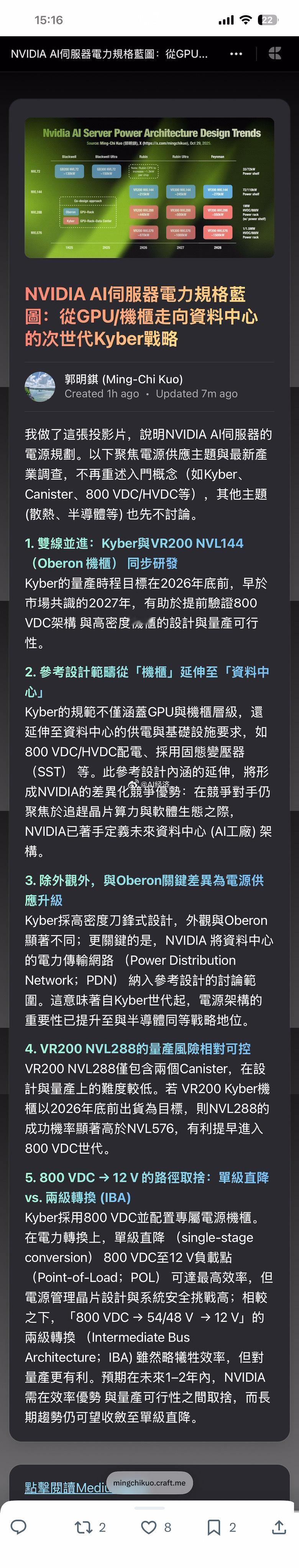 NVIDIAAI伺服器電力規格藍圖:從GPU/機櫃走向資料中心的次世代Kybe
