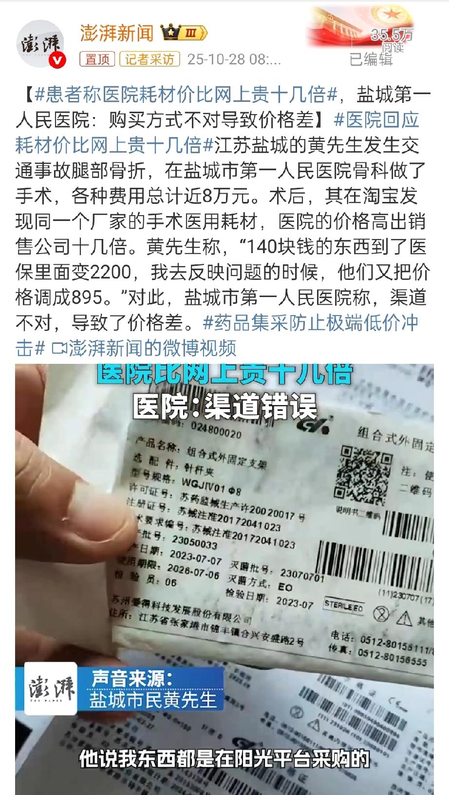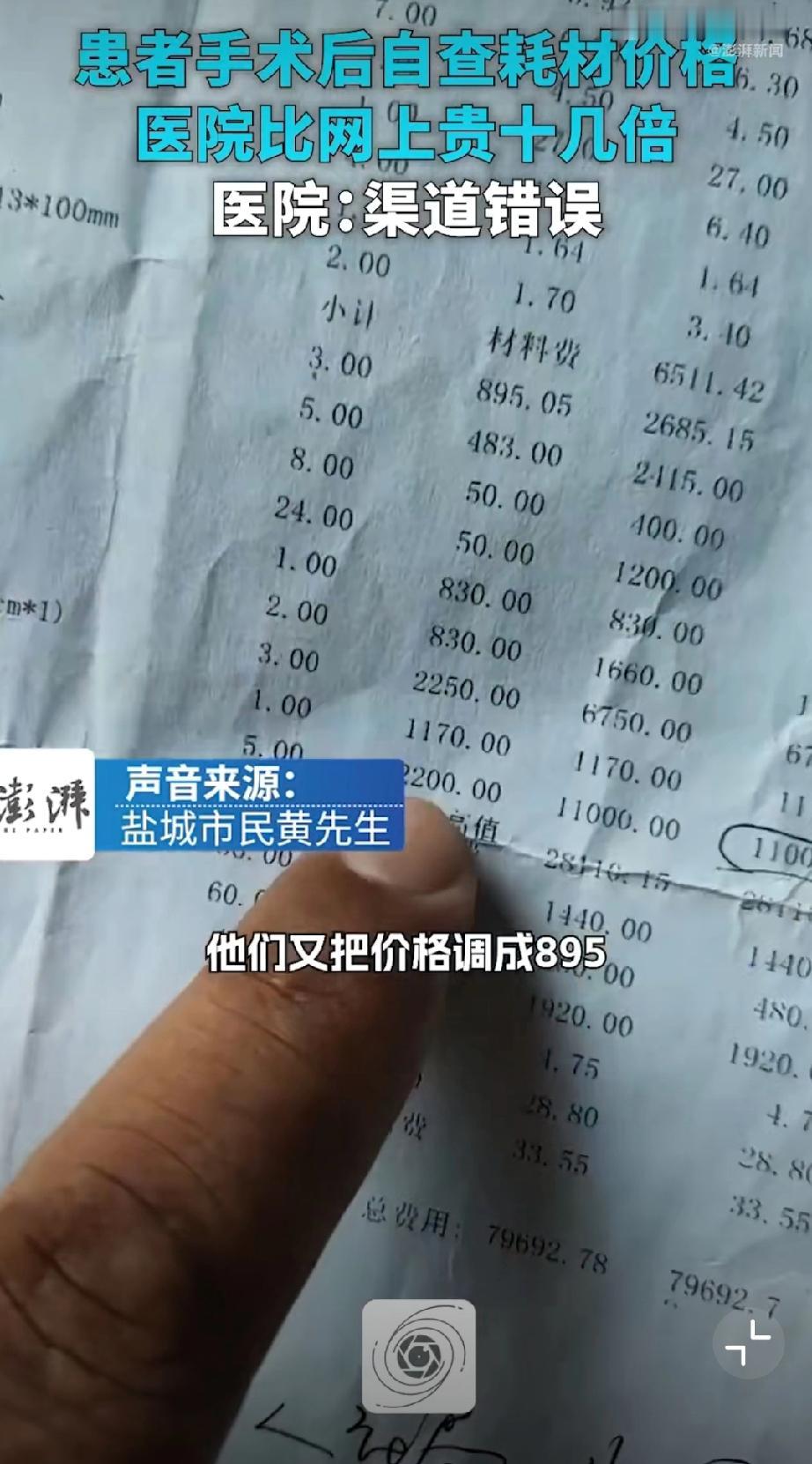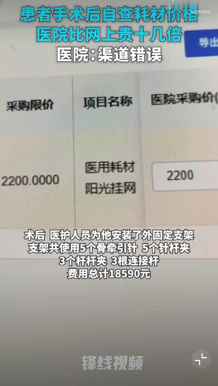 140元的手术器材医保里2200元,贵十几倍,可能存在一些信息差,但也不至于有如此大差价。 事发盐城一家三甲医院,院方说是江苏省“阳光采购平台”的定价,说明不只一家医院如此价格。涉及医保费用,希望能有一份情况说明!医疗检查费 医保内药品价格 手术收费