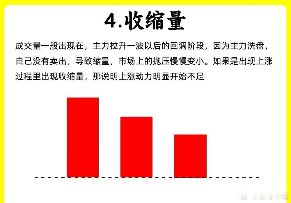 出现逐步缩量,量能一天比一天要少,这种成交量一般出现在,主力拉升一波以后的回调阶段,因为主力洗盘,自己没有卖出,导致缩量,市场上的抛压慢慢变小。如果是出现上涨过程里出现收缩量,那说明上涨动力明显开始不足