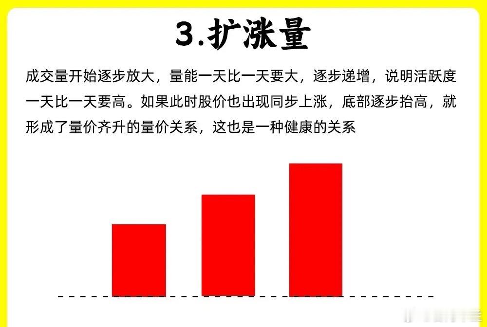 就是成交量开始逐步放大,量能一天比一天要大,逐步递增,说明活跃度一天比一天要高。如果此时股价也出现同步上涨,底部逐步抬高,就形成了量价齐升的量价关系,这也是一种健康的关系。一般这种成交量出现上涨的初期和中期,如果是出现在下跌趋势当中,那说明抛压逐步变大
