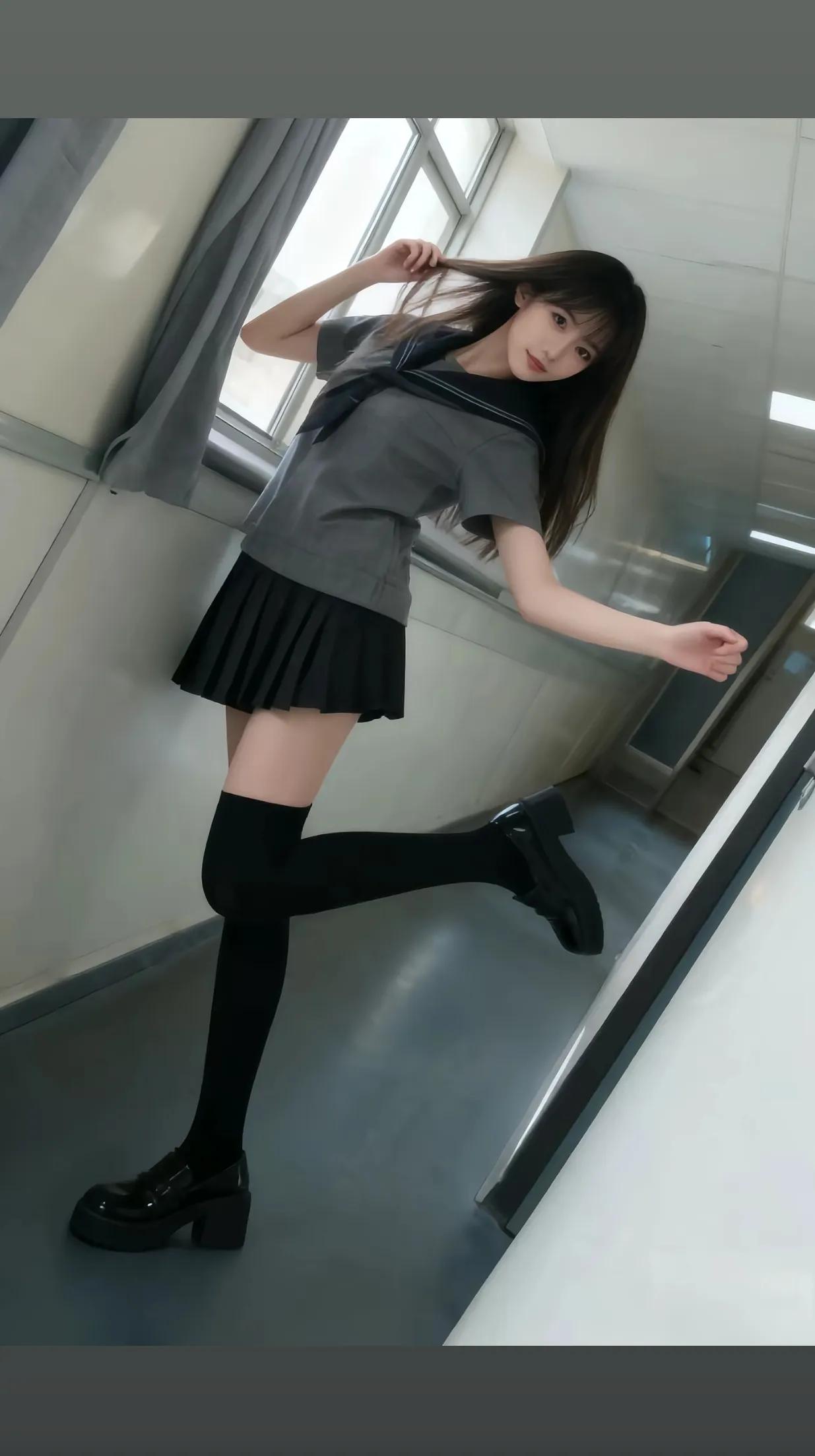 校园少女风,黑裙黑袜,青春活力!👠💃🏻白丝袜女孩黑裙少女风jk裙袜子