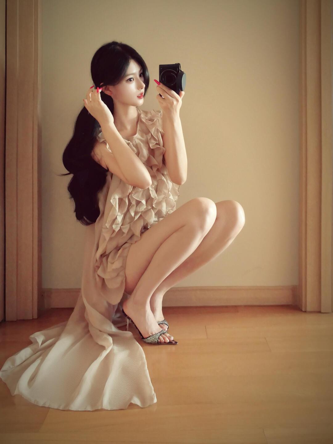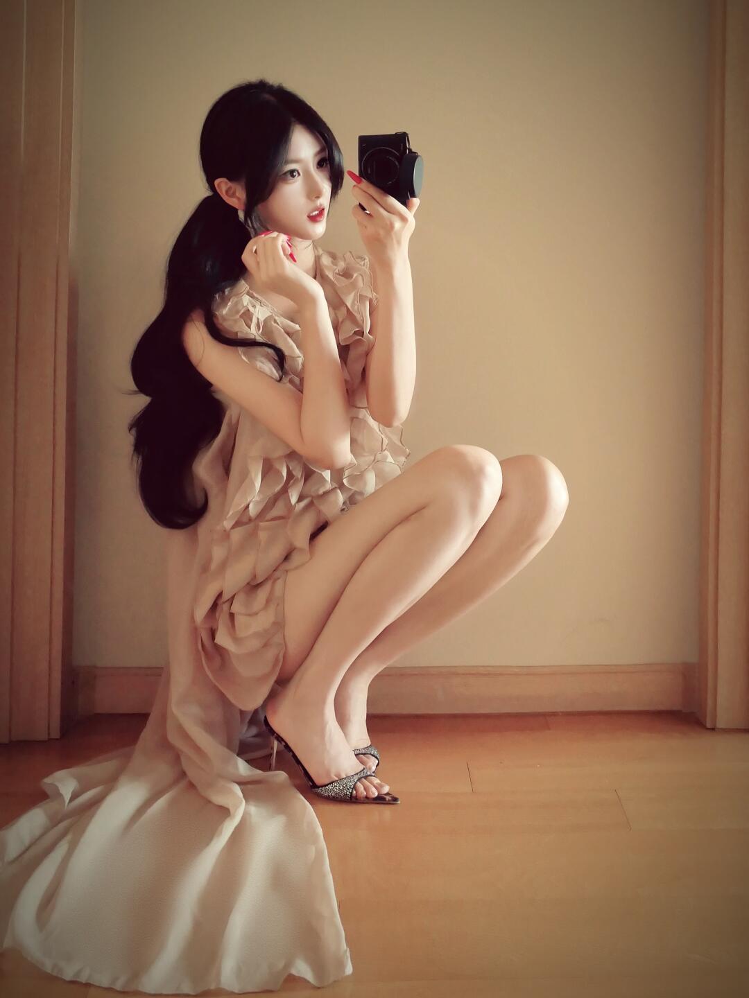 晒图笔记大赛 优雅自拍,米色连衣裙搭配高跟鞋,镜中自拍的时尚瞬间