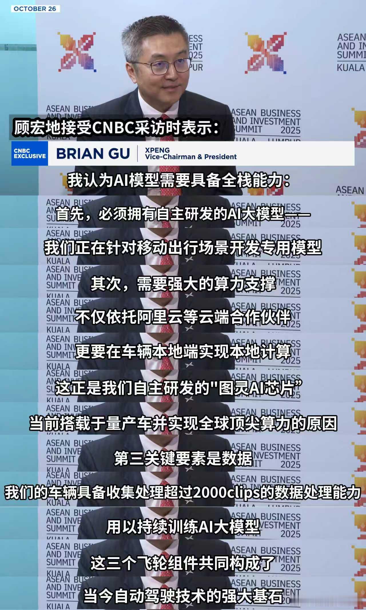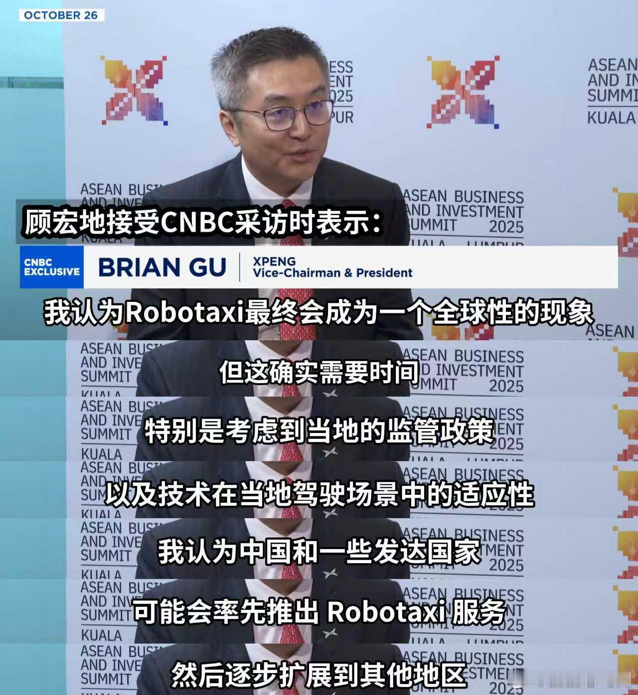 小鹏高管透露科技日将公布首款robotaxi 在昨日播出的CNBC(美国消费者新闻与商业频道)专访中,小鹏汽车副董事长兼联席总裁顾宏地博士透露,小鹏在物理AI上的投入,已经帮助公司在智能驾驶领域出现革命性能力提升。此外,他进一步透露,公司即将在科技日活动中正式公布"小鹏首个量产Robotaxi产品"的最新进展。这一重磅消息标志着小鹏汽车在智能驾驶领域实现重大战略突破。 小鹏高管称AI让小鹏技术出现革命性进展