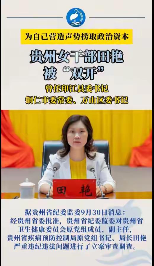 外号“田哥艳姐” 头号创作者激励计划 让人唯一欣慰的是,通报中没有说她犯生活纪律,也就是没有权色交易和钱色交易等等,这还是比较难得的。作为贵州省卫健委副主任,而且是学医的女性出身,走上仕途没有靠色相,而她本身长的也比较漂亮,出乎很多人的意料。田艳看来是比较厉害的人,工作中作风雷厉风行,估计属于女强人型的。这样的人犯事也往往罪行很大,因为胆子非常大,又长期在重要岗位上工作,而且担任市委书记相当长时间,估计后面等待她的将是漫长监狱生活。