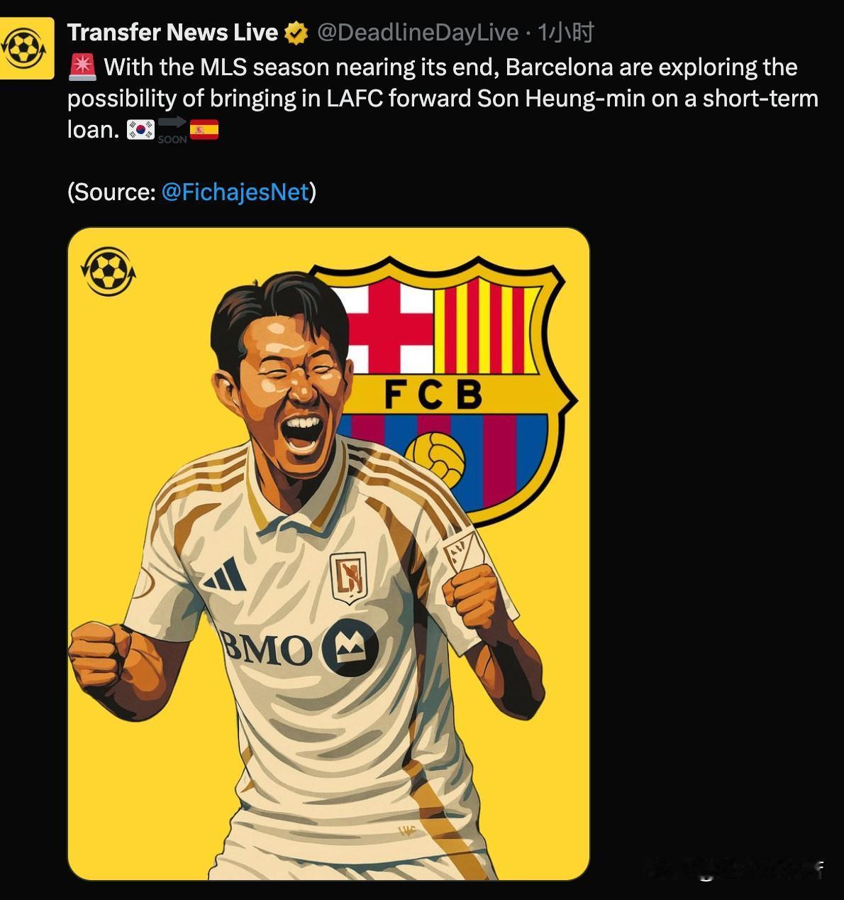 巴塞罗那俱乐部考虑在冬季窗口邀请韩国球星孙兴慜。之前孙兴慜曾经流露出想在冬季窗口短暂加盟米兰的意愿,他的经纪人也出现在了米兰,然后就是塔雷接受采访表示我们冬季窗口确实需要一名中锋,但不是孙兴慜,他们特点完全不同。 随着美国职业足球大联盟赛季接近尾声,巴塞罗那正在考虑以短期租借的方式引进洛杉矶FC前锋孙兴慜。巴塞罗那前锋还不够用?不是说曼联太子爷拉什福德表现出色吗,怎么冬季窗口还要补? 个人还是坚持个人想法,孙兴慜其实是很适合米兰的球员,从经济层面说哥们是租借,工资确实高了点,但只是半年,米兰进欧冠奖金和这点工资咋就算不明白,又犯捡芝麻丢西瓜的毛病,这样的错误我们最近两个赛季一直存在,从竞技层面看孙兴慜确实爆发力有所下降,但跑位拿球对抗等能力都还在,而且射门能力很强,最重要的是孙兴慜很职业,他的国际可能不讨喜,但职业态度没得说,个人还是觉得米兰应当考虑孙兴慜。