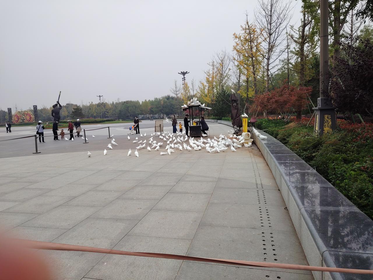 今天我和妻子到昆明池游玩,昆明池的门很多,我们是从昆明池的西北门进出的。我们把车停在一号停车场附近。刚一进昆明池,我们就被汉武帝高大的楼船震撼了,这座楼船高三十三米,汉武帝的身高十四米,我随手从不同的角度拍了几张照片。昆明池也叫七夕公园,里面还有牛郎织女的雕塑,让这个公园充满了美丽的传说,弥漫着农耕文化气息。走过高大的楼船,看到景区客服中心,看到美丽的白色的鸽子,还看到了高大商业楼。看了商业楼,我走上栈道,登上了鹊桥,看广阔无比的昆明池,令人心旷神怡。在返回路上,我们看了一副铜婚木刻,我的孩子今年正好是铜婚,就照了一张像,用微信发给孩子,祝他铜婚快乐。后来又看到金刚婚的雕塑,我和妻子在此留影,祝愿我们能携手走到金刚婚。游完昆明池,我们准备返回,先在景区客服中心喝了一点水,吃了一点干粮,休憩了一会儿,然后准备回家。在返回途中,我们怎么也找不到来时的出入口,也找不到我们的车。问了好多人,费了好大劲才找到了。老了老了,不中用了。当我们找到我们的车,已经到了下午两点,过了中午饭点。妻子要到马王镇吃饭,我建议就近到斗门镇吃饭。找了一个饭庄,因为过了饭点,已经没有顾客了,只有我们夫妻两在里面吃饭。我们去昆明池的路和回昆明湖的路不一样,走到一个陌生的村庄,妻子问我这个村子怎么叫道村,我仔细一看,笑着说,那是村道,不是道村。我们去的时候走的村道多,减速带太多,非常难走,回来的时候走310国道,非常顺利。回来的时候,我们村子今天有集市,我们顺便买了很多菜。今天是重阳节,我们这重阳节过得很有意思。