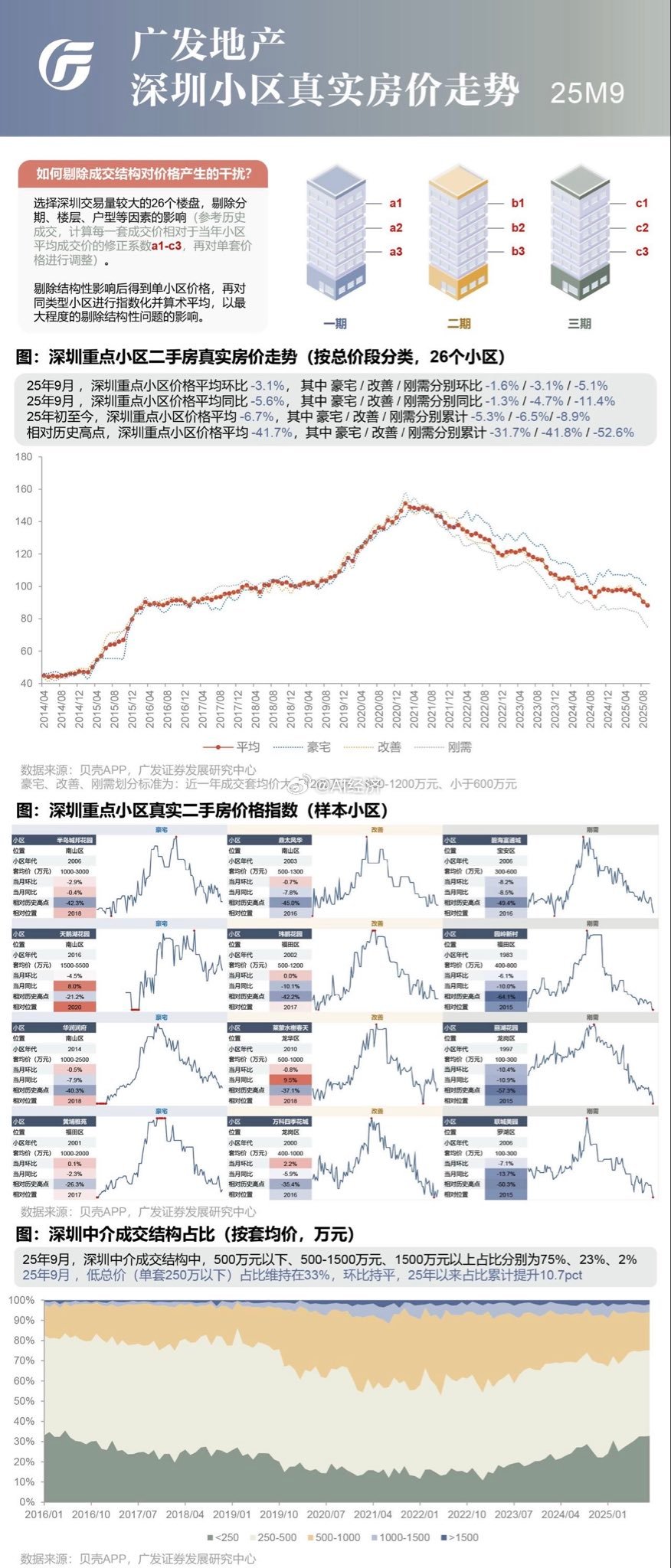 沪深小区真实房价走势:上海重点小区相对历史高点平均下降30.9%、深圳则是41.7%。