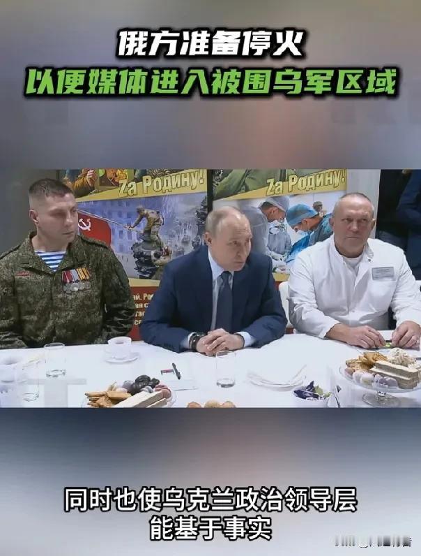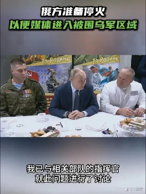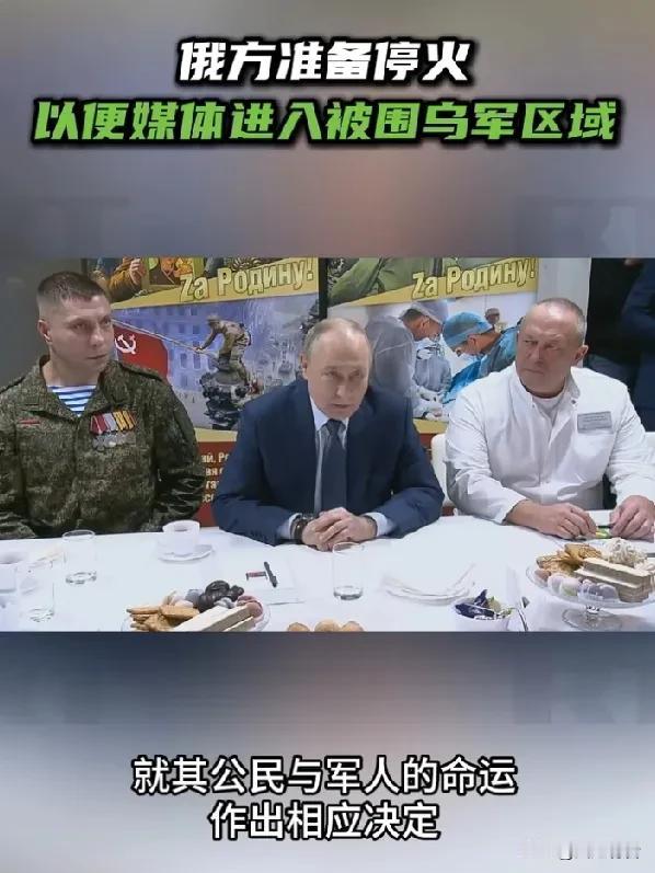 普京总统宣布,要对红军城、库皮扬斯克包围圈内的一万余名乌军实施临时停火! 据今日俄罗斯10月29日夜间报道,俄罗斯总统当日在访问曼德里克中央军事临床医院时对媒体表示,俄方准备在包括乌克兰和国际媒体记者停留乌军被包围区域期间暂停军事行动。不过他并没有宣布具体的停火时间。 俄军总参谋长26日向普京总统报告称,超过一万名乌军士兵被围困在红军城和库皮扬斯克。面对歼灭乌军有生力量的大好机会,普京总统为什么会允许记者进入,而且单方面宣布暂时停火呢?他的解释是,外国记者可以亲眼目睹被包围乌军现状,然后让乌克兰领导人决定这些被困乌军的命运。同时,他还强调,最重要的是避免乌方挑衅,防止乌军无人机袭击记者后嫁祸于俄军。 俄方此举的真实意图是什么?估计是想通过记者进入包围区域报道被困乌军惨状,给全世界以乌克兰政府不关心士兵生死的印象,进一步瓦解乌克兰政府、军人和民众的战争意志。要知道,目前乌方面对一万余名乌军被包围的现实束手无策的:命令撤退又撤不出来,派兵解救又屡次失败。难道要下令让他们就地投降吗,这更不现实。只能眼睁睁的看着覆灭。 普京总统这一招用网友的话来讲,就是“杀人诛心”。