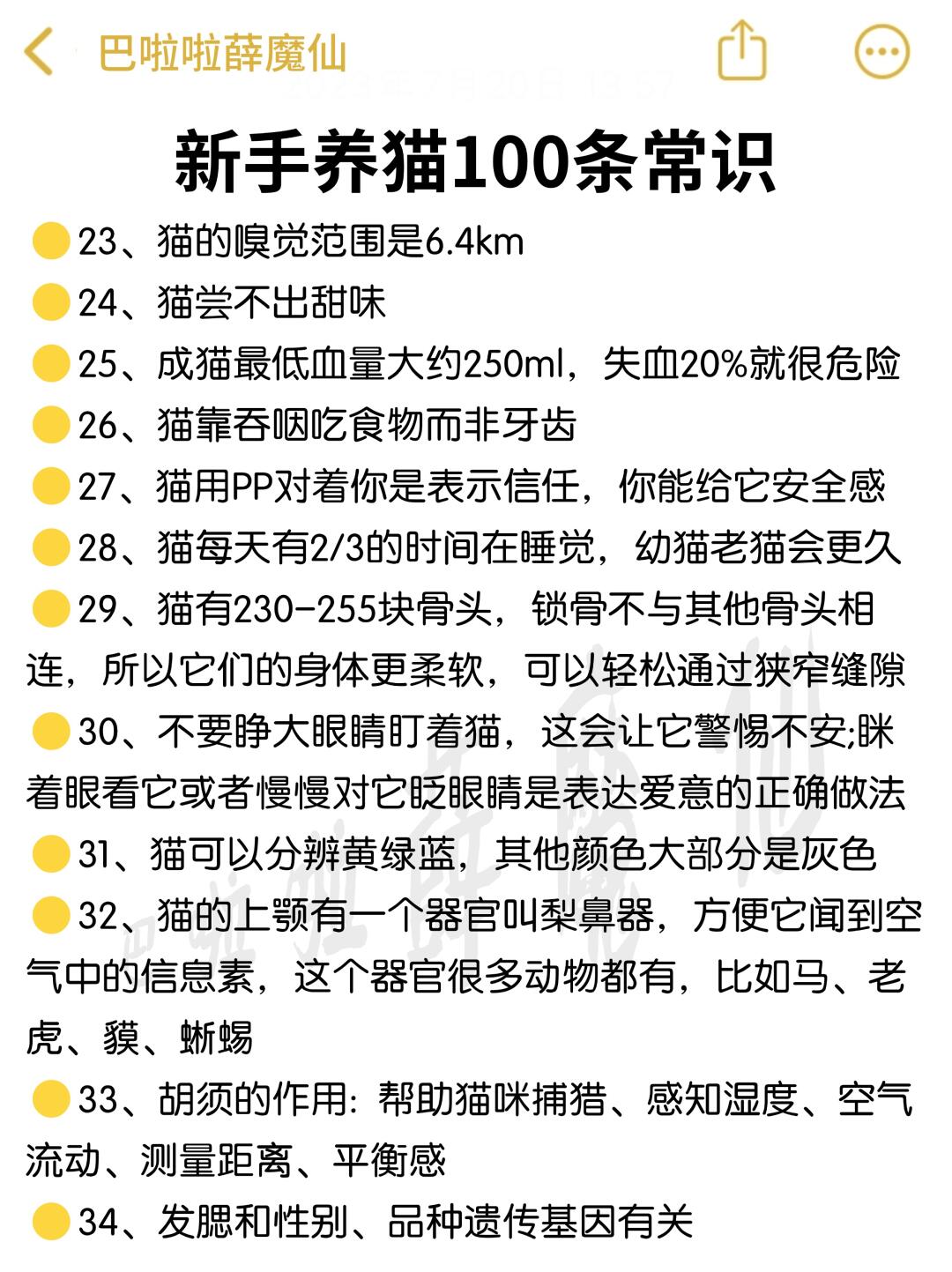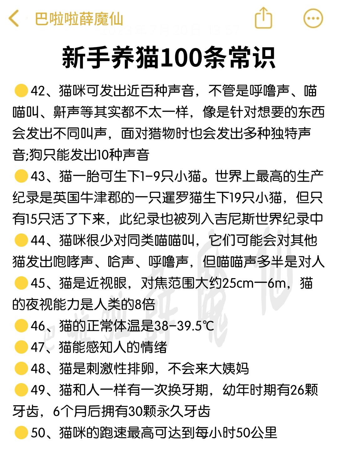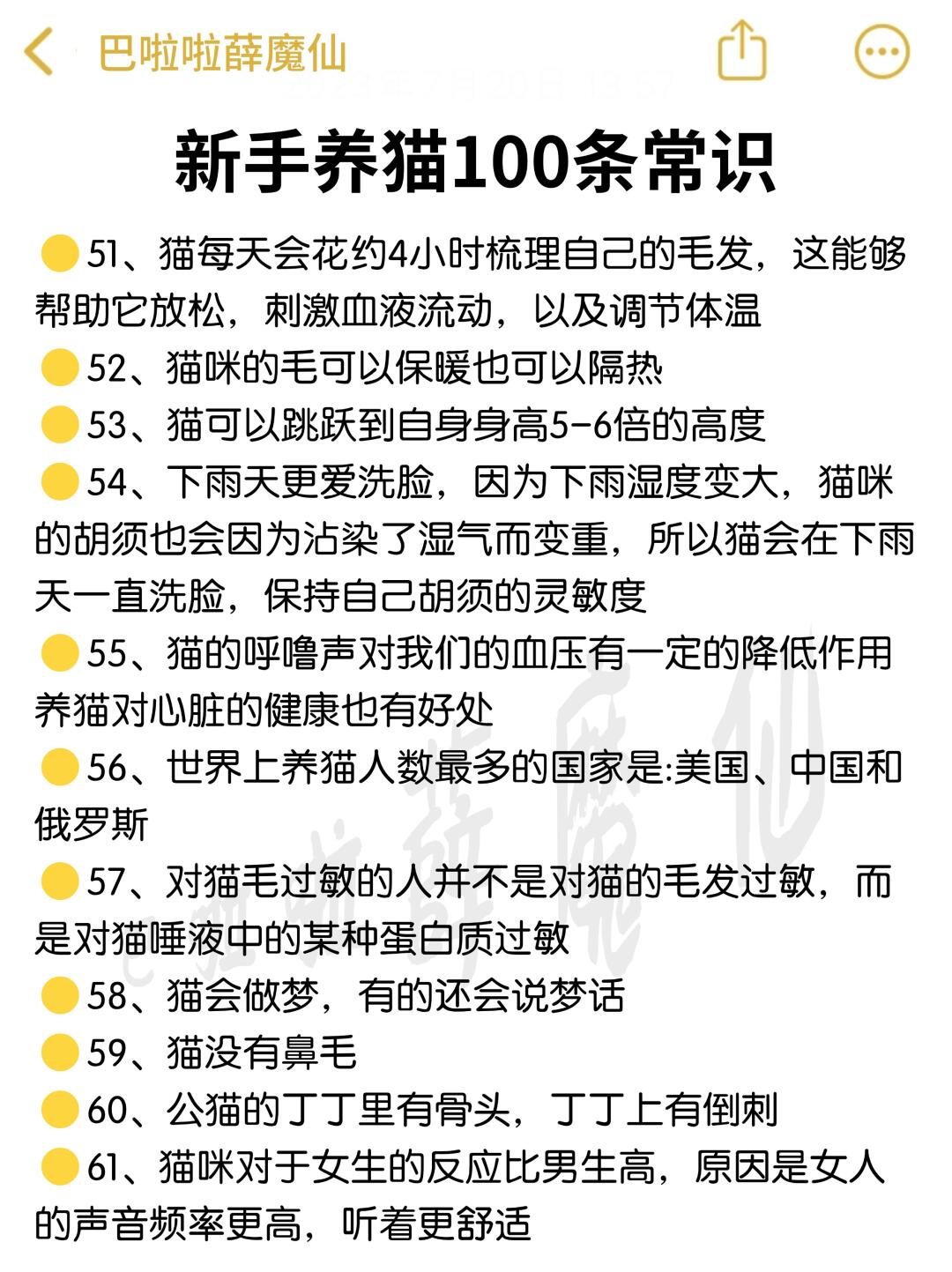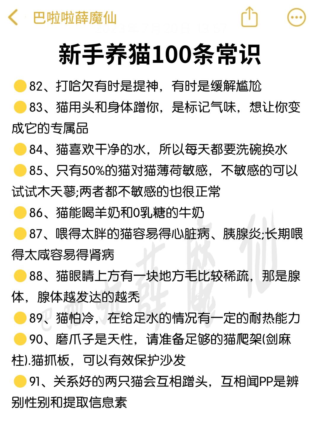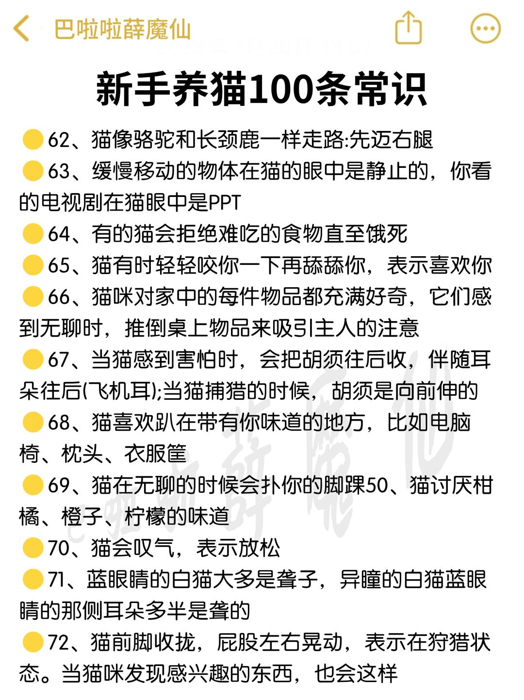 不懂就问有问必答 很多新手铲屎官在刚开始养猫的时候,对于养猫方面肯定会有很多疑问,👉整理了100条养猫小常识,快来学习吧~