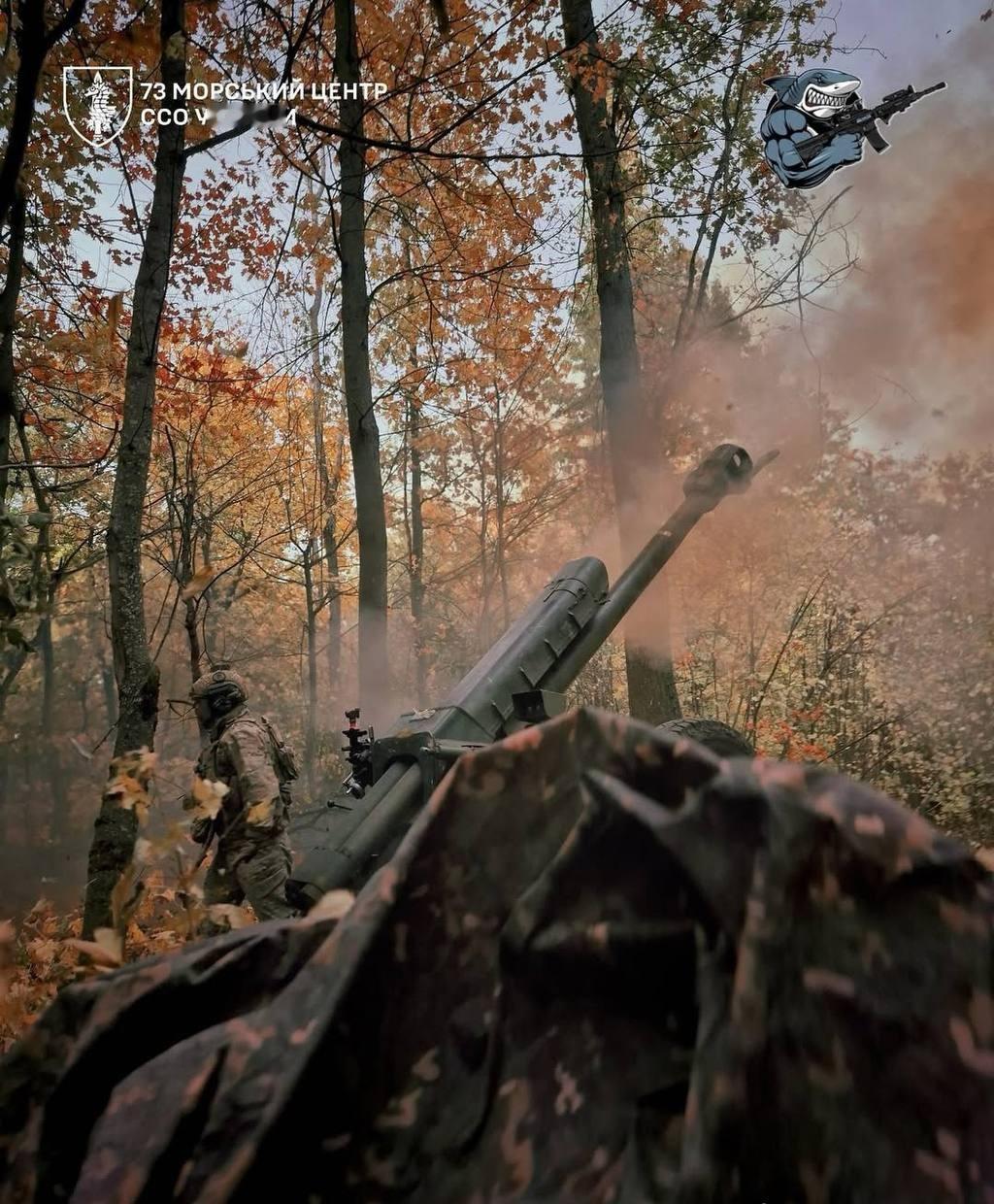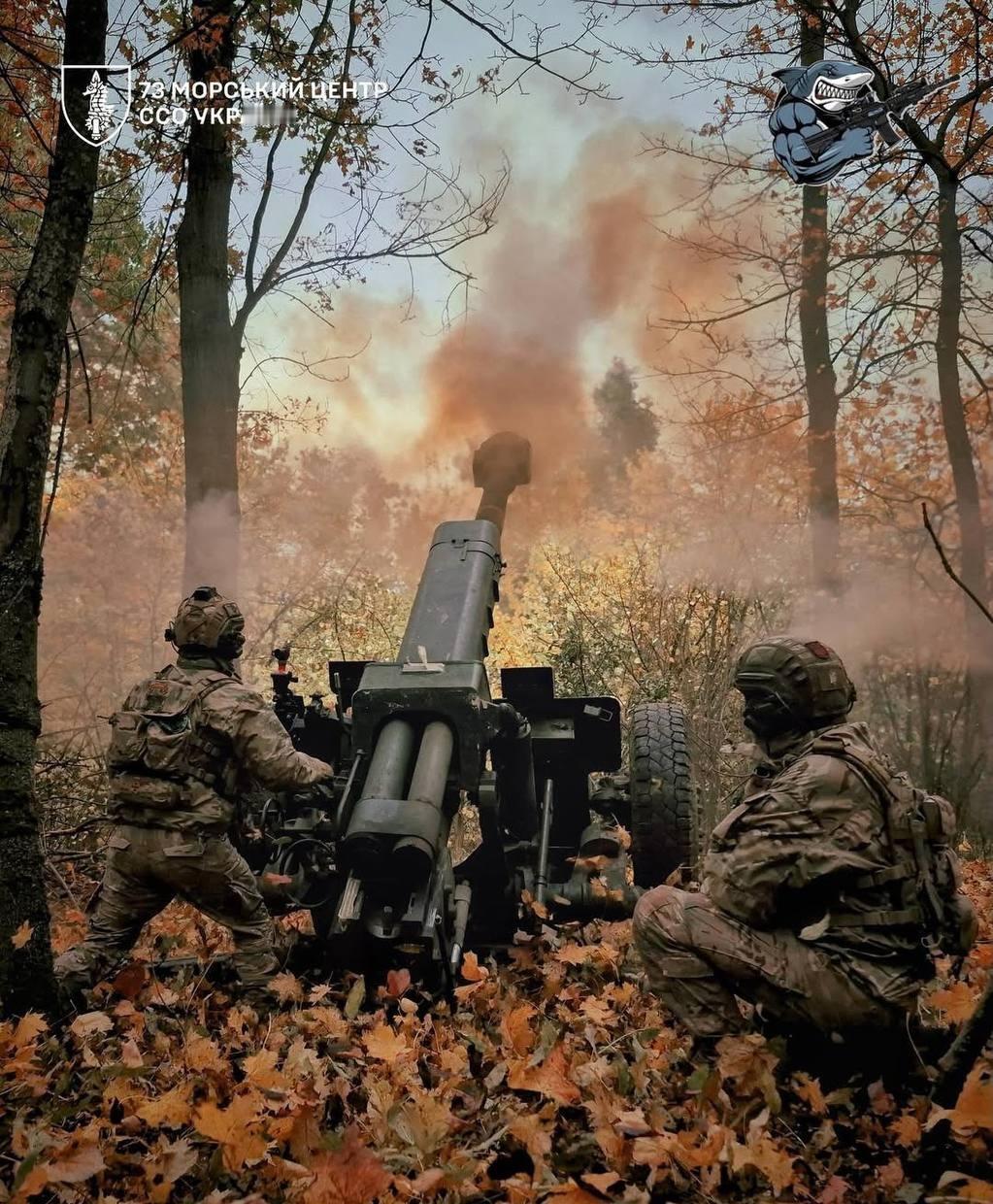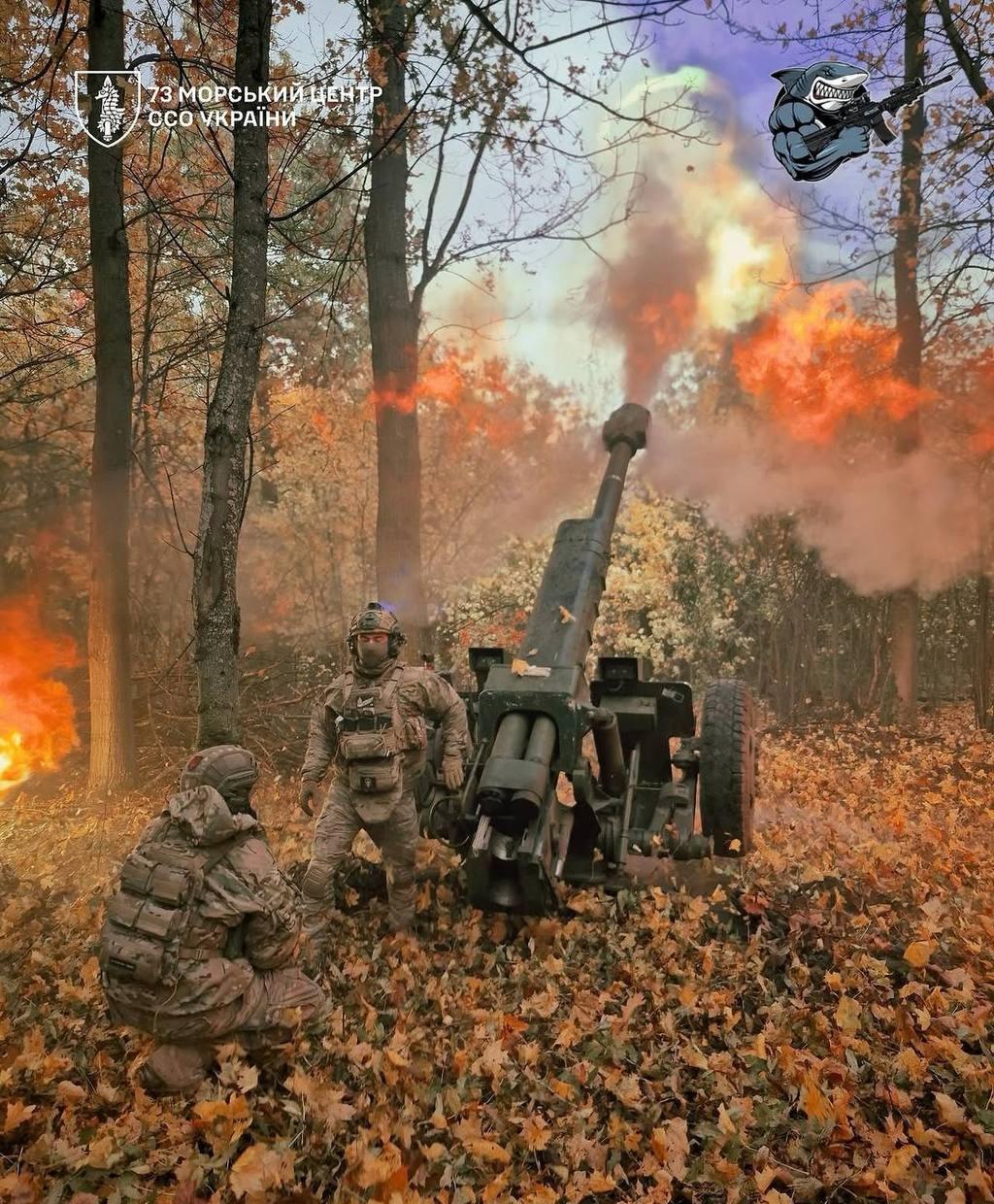 乌克兰第73海上中心(73 морського центру ССО)特种部队 在 库尔斯克/布良斯克边境地区使用2无1有(无坑无棚有轮子)的d30开火~