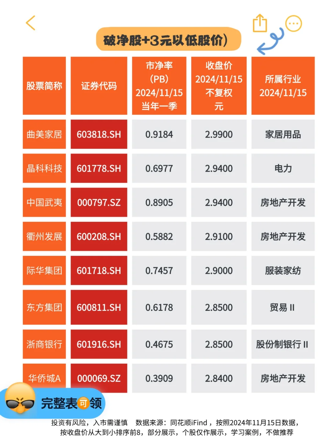 [合十R]在政策加持下,基本面优质的破净公司,长期看,具有价值回归的潜能。完整表单可领[点赞R]投资有风险,入市需谨慎