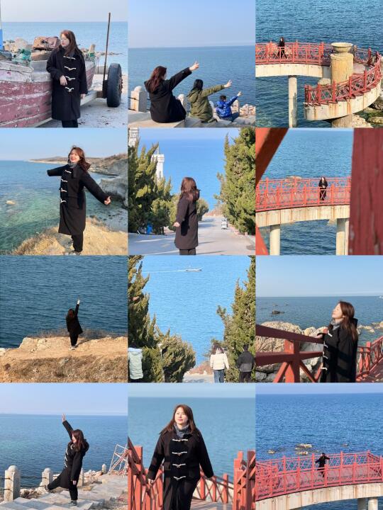 第一天约好小哥哥小姐姐9点酒店出发🛫沿途走走停停拍拍:先去的渔人码头打卡烟台欧式小布达拉宫➕千与千寻童话铁轨(在大海里的铁轨)