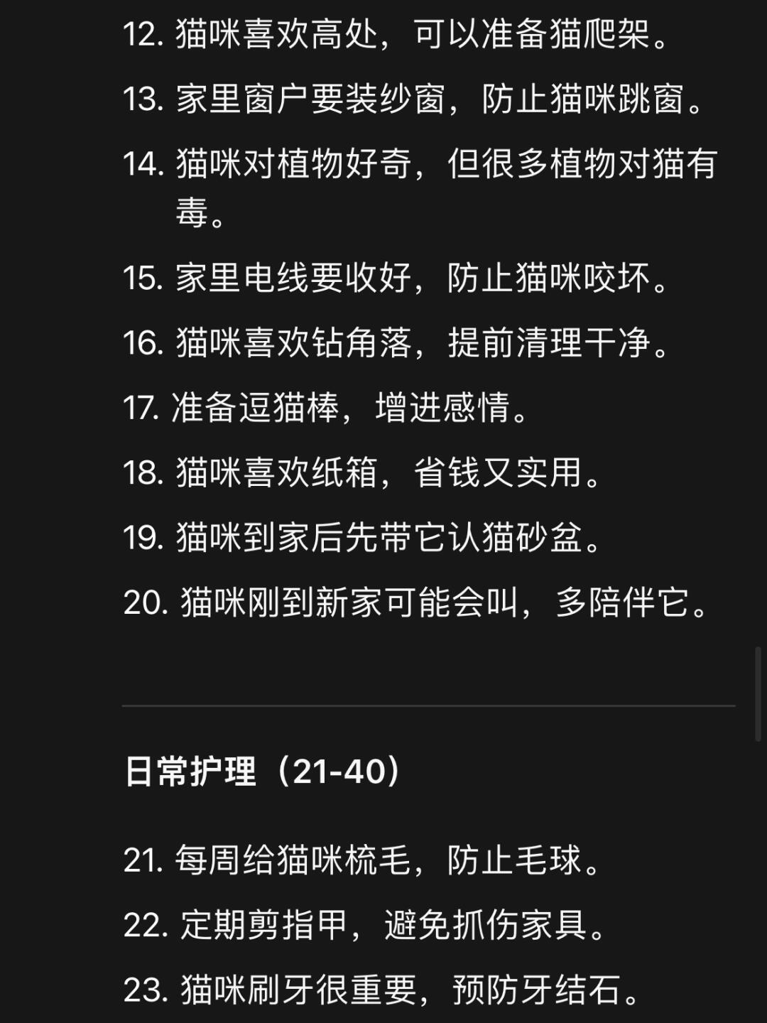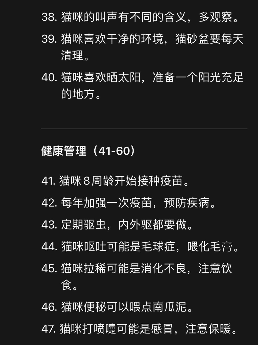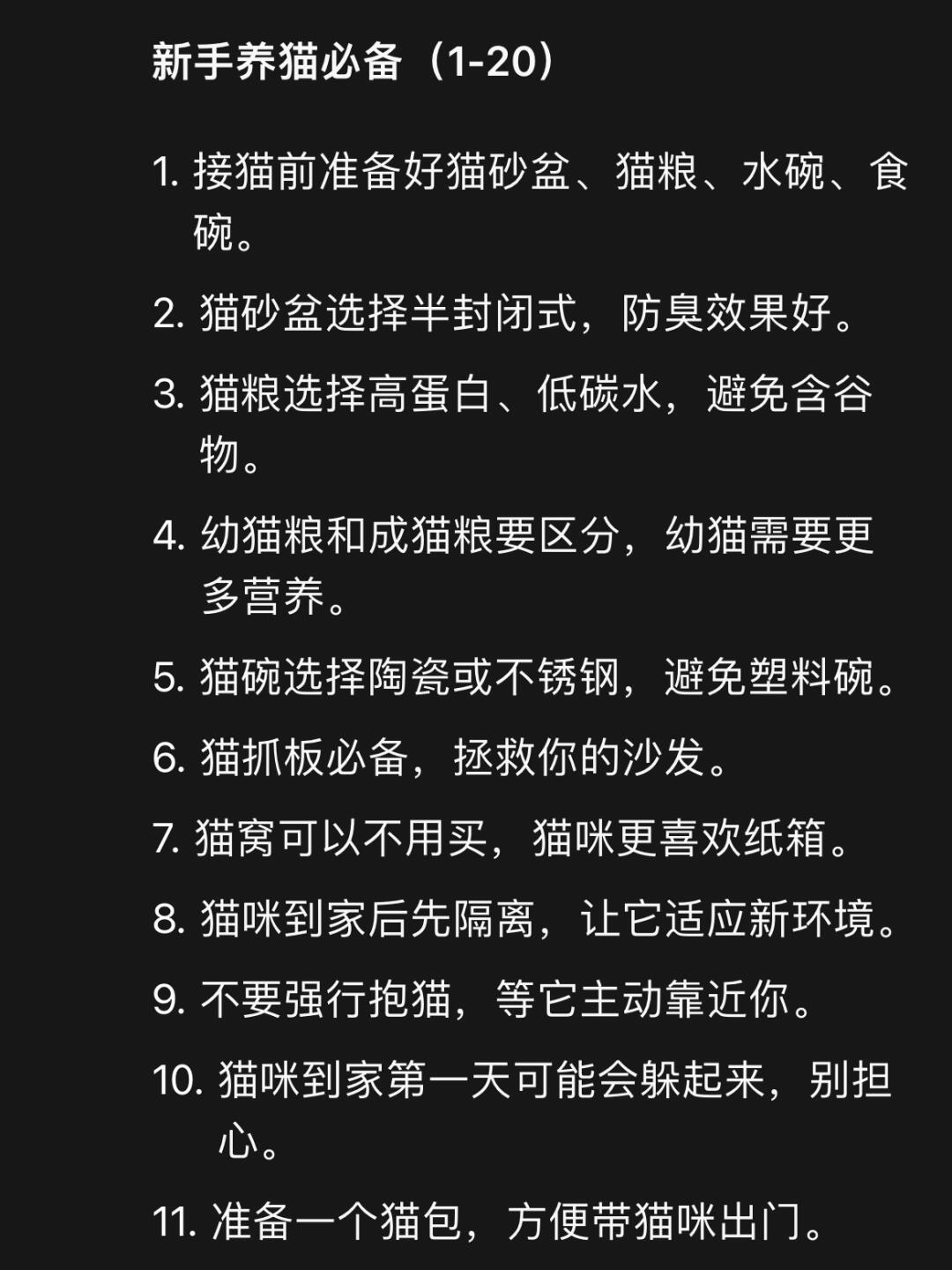 当我问deepseek有没有养猫经验,分享给第一次养猫的朋友?它给出了100条实用建议! 我这个六年资深猫奴看完都拍手叫“绝了”,每一条都很真实!新手赶紧码住吧~