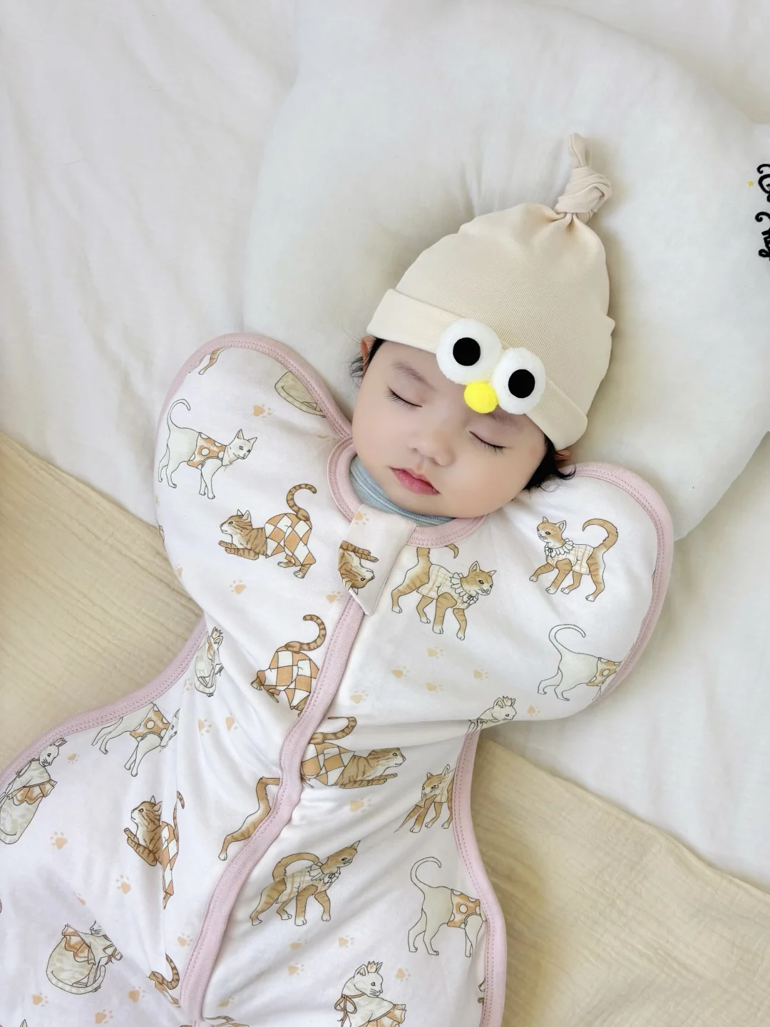 我家娃现在睡觉就穿着,小手小脚都包裹起来后