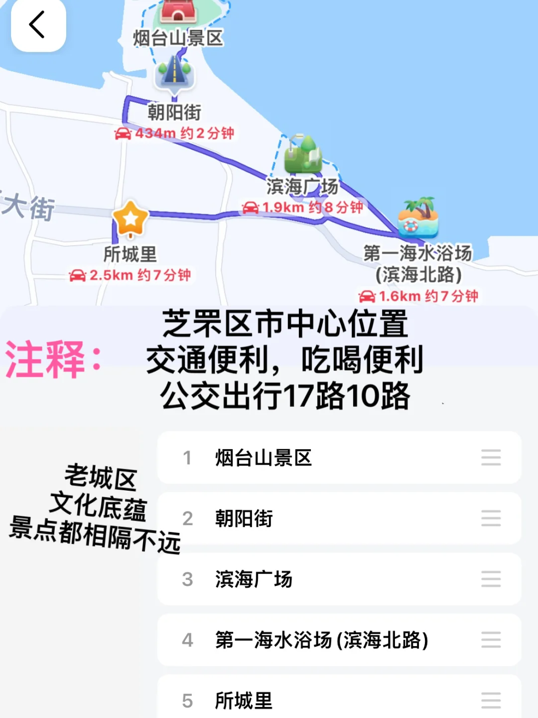 答:市区第1海水浴场!郊区粉色沙滩(61路可达)再就是蓬莱阁八仙度那边[自拍R]