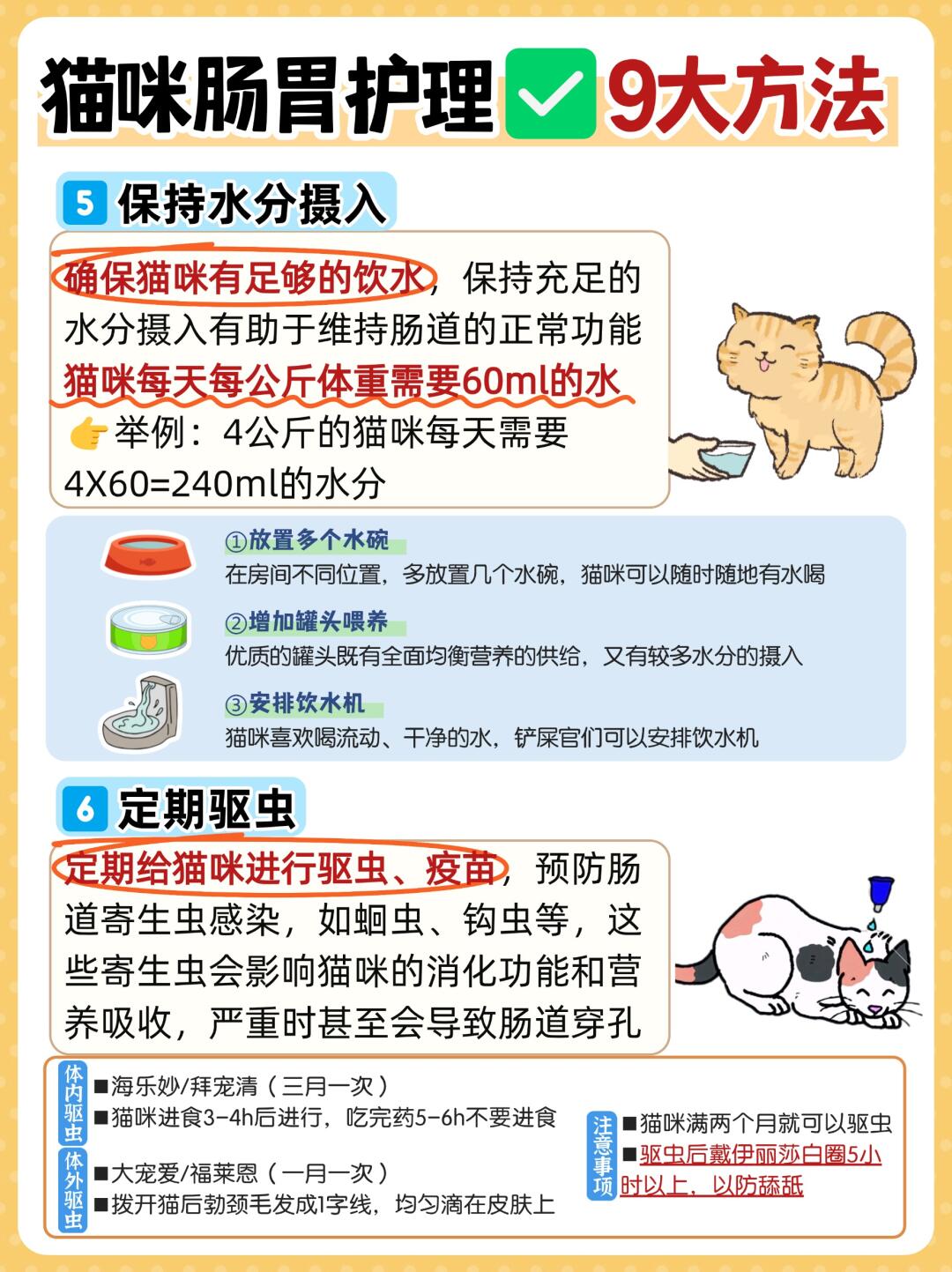 5⃣保持水分摄入:猫咪每天每公斤体重需要60ml的水