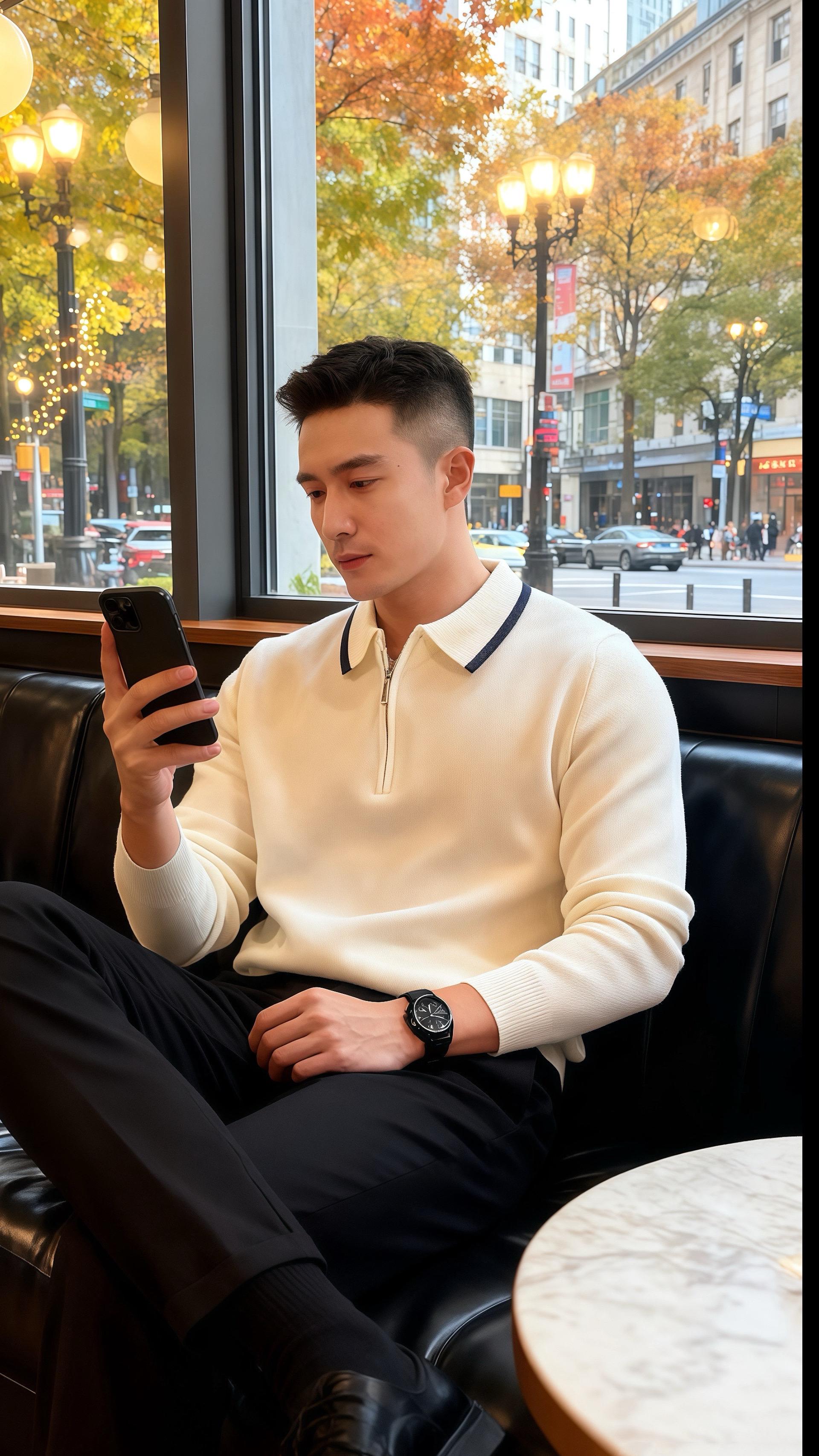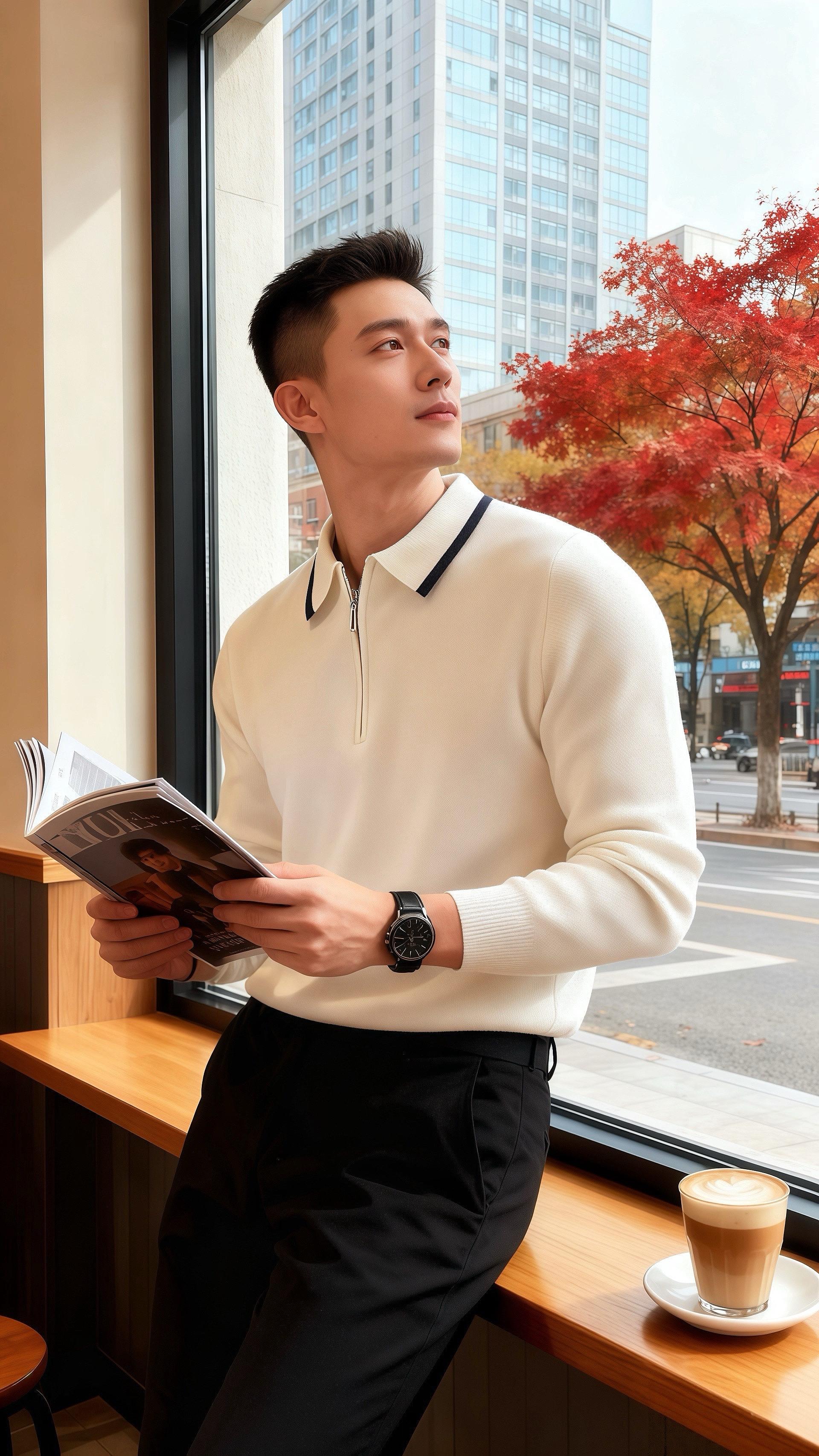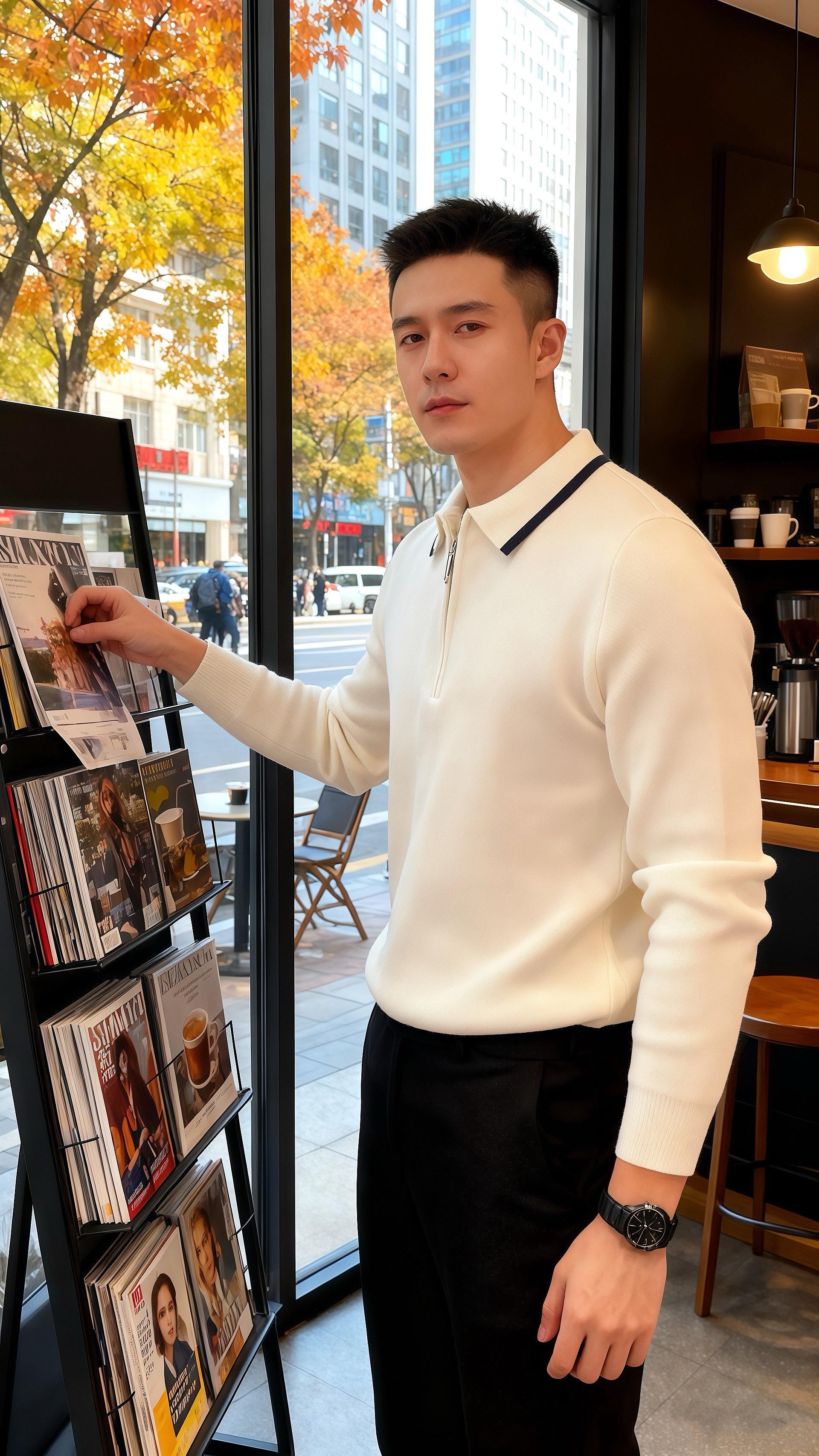 他们并肩站在书架旁,从杂志聊到咖啡,从穿搭聊到生活。窗外秋叶斑斓,店内