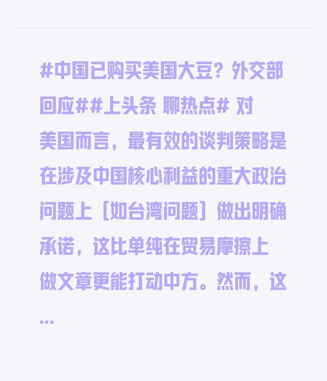 对美国而言,最有效的谈判策略是在涉及中国核心利益的重大政治问题上(如台湾问题)做出明确承诺,这比单纯在贸易摩擦上做文章更能打动中方。然而,这又与美方当前的对华强硬战略存在根本矛盾。因此,即便美方拿出一些筹码,短期内达成一项能让双方都满意的大规模采购协议仍面临重重困难。未来的谈判结果,将是两国战略决心和政治智慧的直接体现。