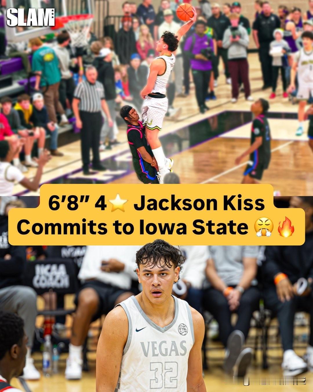 新西兰前锋Jackson Kiss宣布承诺NCAA男篮 爱荷华州立,高四赛季就读于犹他州Utah Prep,身高6-7=201,出生于2007年5月,2024年U17男篮世界杯场均16.8分钟得到7.9分6.6篮板1.9助攻1.4抢断,球队这届收到的第三位加盟者,之前还有后卫Christian Wiggins与Yusef Gray Jr。