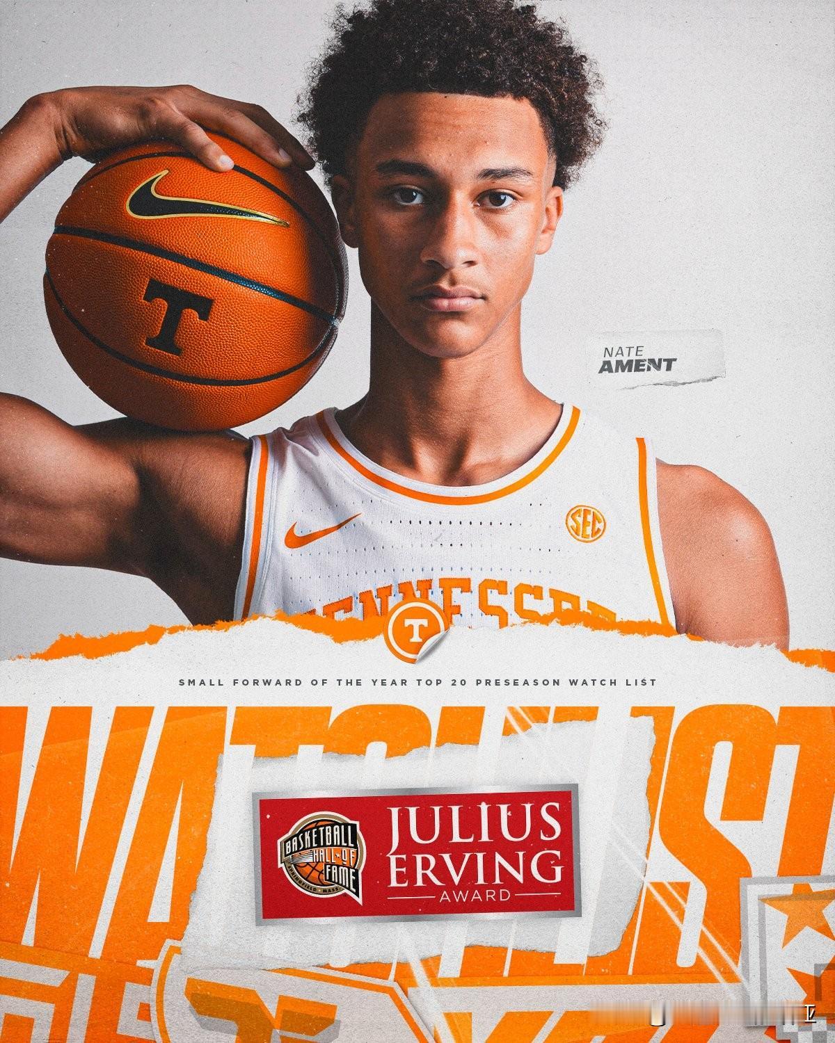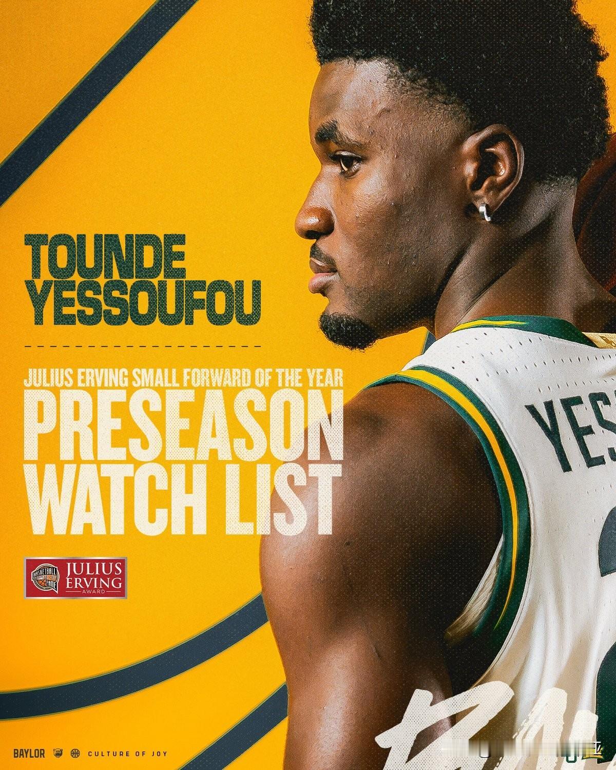 朱利叶斯-欧文奖=年度最佳小前锋,季前20人观察名单,六位新生入选,2026年nba选秀 杨百翰AJ Dybantsa,杜克大学意大利Dame Sarr,贝勒大学Tounde Yessoufou,休斯顿Isiah Harwell,田纳西大学Nate Ament,康涅狄格Braylon Mullins。