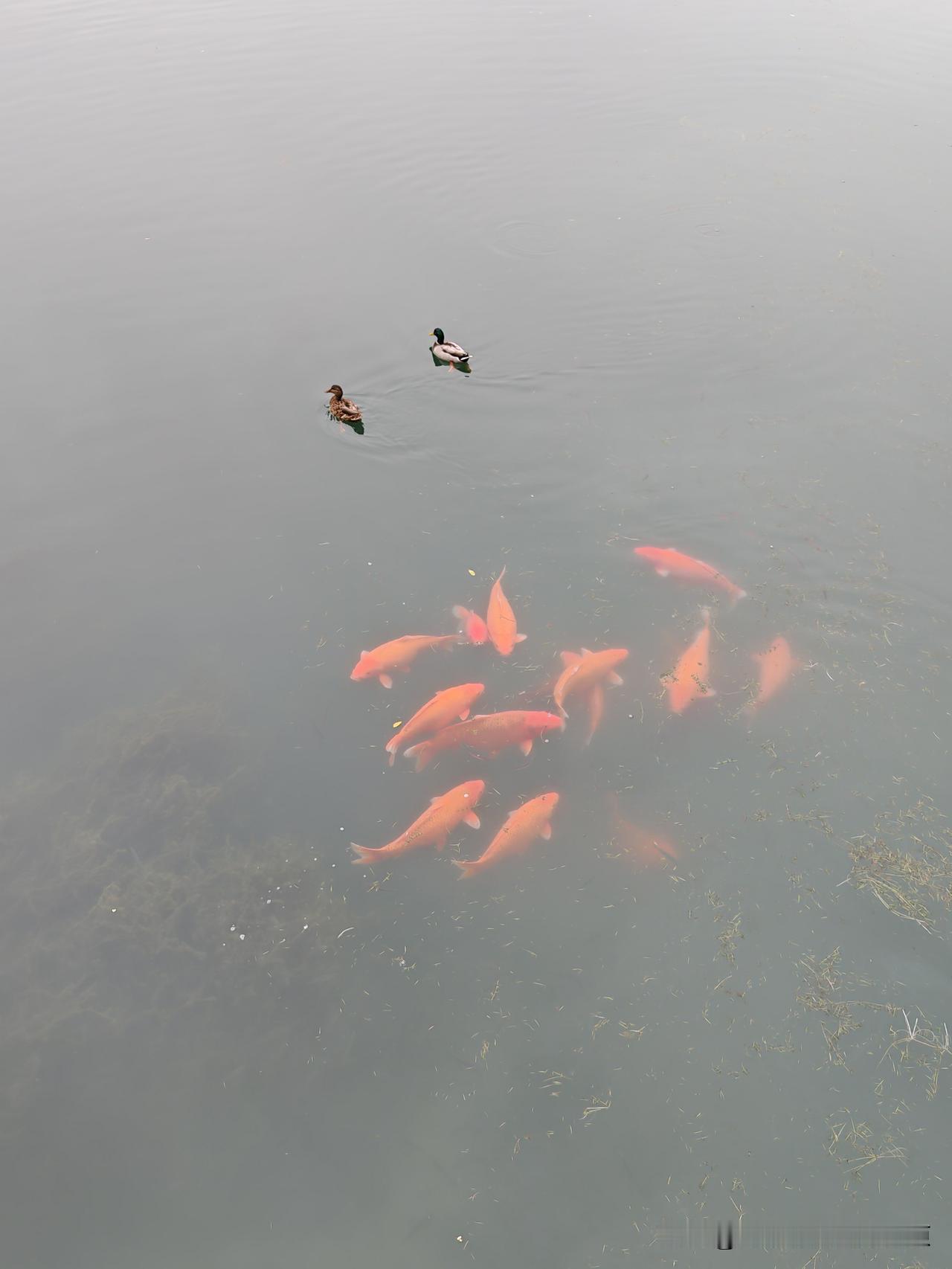 北京故宫的护城河里。 两只野鸭,一群鱼 1号鸭子🦆说:“嘎嘎嘎,鱼好大,好多” 2号鸭子🦆说:“嘎嘎嘎,别看了,走吧,太大了,吃不下,眼不见为净” 鸭🦆身最痛苦的事情莫过于此,美味就在身边,可自己却享受不了