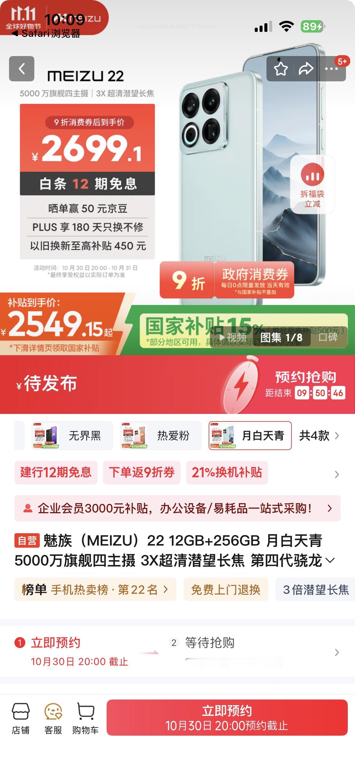 魅族22新颜色上线——月白天青,价格不变,2999-4199,能做到2549元起
