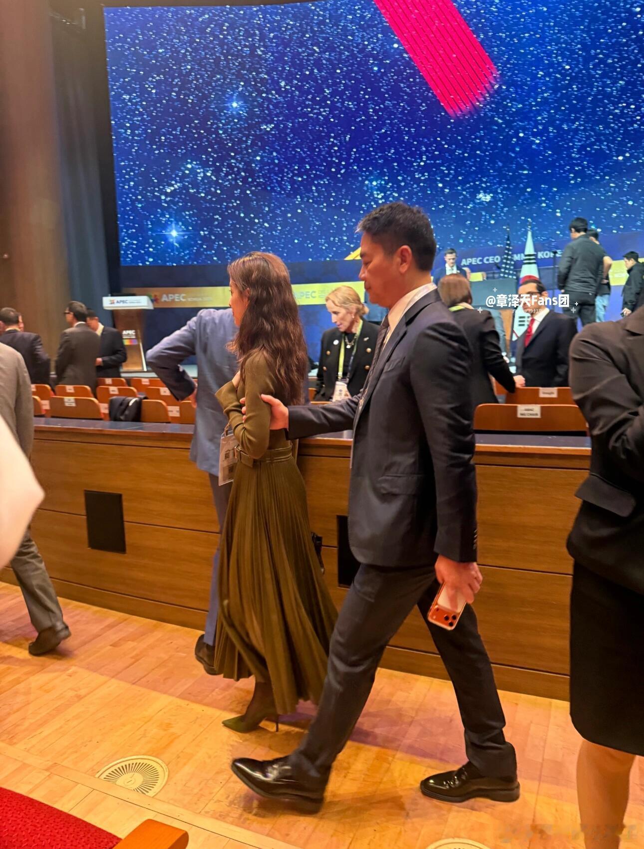 刘强东搀扶着章泽天刘强东扶着章泽天刘强东章泽天韩国出席峰会,章泽天脚踩高跟鞋,