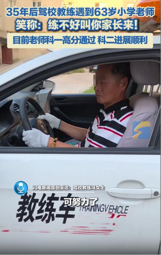 “苍天饶过谁!”山西,63岁老人学车,驾校给他安排了女教练,不料,刚一见面,老人就脸红了!原来,这个女教练不是别人,而是他35年前教的小学生,虽然过了这么久,但还是一眼就认了出来,如今风水轮流转,女教练嘴角连AK都压不住了:你给我好好练,不好好练就回去叫家长过来! “张老师,真的是您?”女教练摘下墨镜,声音带着几分不确定。63岁的张老师正试图打开车门,听到这句话,他抬起头,愣了几秒,脸上瞬间浮出一丝羞赧的笑:“你是,小刘?” 这一幕,出现在山西一家驾校的练车场上,学员张老师年过六旬,想要考个驾照。可没想到,驾校安排给他的教练,竟然是自己35年前教过的学生。 这一场“师生重逢”,让围观的学员们都忍不住笑出声,场面既尴尬又暖心。 张老师说,退休后他就想着学会开车,能自个儿去转转,但他没想到,这趟学车之旅会给他带来一段意想不到的经历:从学生到老师,再从老师变成学员,身份的转换让人感慨。 这段“师生情缘”被发到了网上,引发了无数网友点赞。有人留言:“人生就是一场轮回,当年你教我做人,如今我教你开车,缘分真奇妙!”也有人感慨:“苍天饶过谁!原来连老师都逃不过学生的‘反击’!” 不过这些笑声背后,其实藏着深深的人情味。 在很多人眼里,师生关系往往随着时间淡了,但这件事证明,真正的教育,会留在心里,不会被岁月冲淡。刘教练说:“其实我很感谢张老师,他那时候让我明白什么是认真。现在我教别人开车,也用他的方式,讲理、耐心。” 而张老师则说:“人一辈子,不管到哪儿,都要保持学习的心态。只要还在学,就还年轻。”这话,让不少年轻人都动容。 而且回想整件事,最有意思的不是“老师学车被学生教”,而是其中透出的那种跨越时间的尊重与情谊。当年老师种下的善意,如今在学生身上开花结果;而学生的耐心和幽默,又成了老师的安慰与自豪。 网友们笑称:“这叫因果循环,师恩难忘。”但换个角度看,这其实也是人生最温柔的轮回:那些曾经教会别人如何前行的人,终有一天,也需要被引导。而能在这样的瞬间相遇,本身就是一种福气。 信息来源: 闪电新闻丨驾校教练遇到63岁小学老师,笑称:练不好叫你家长来!目前老师科一高分通过,科二进展顺利 文丨小王 编辑丨史叔